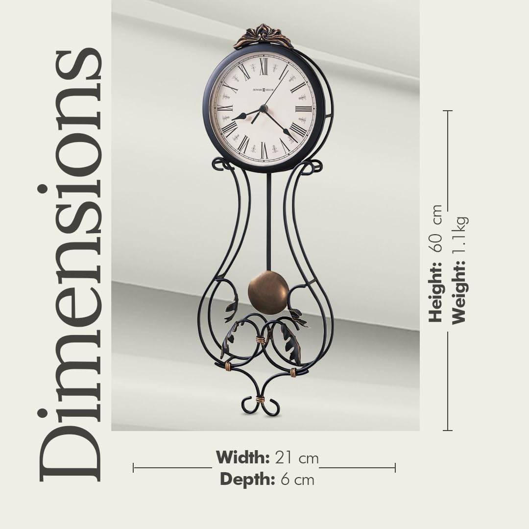 - TIMELESS ELEGANCE: The Paulina Wall Clock features an antique gold-finished pendulum bob, suspended on a charcoal gray pendulum for a touch of vintage sophistication. Its beautifully crafted wrought iron design with decorative leaves enhances any space. Perfect for adding a stylish and traditional charm to your home, office or living room, this timepiece effortlessly blends timeless design with modern functionality.