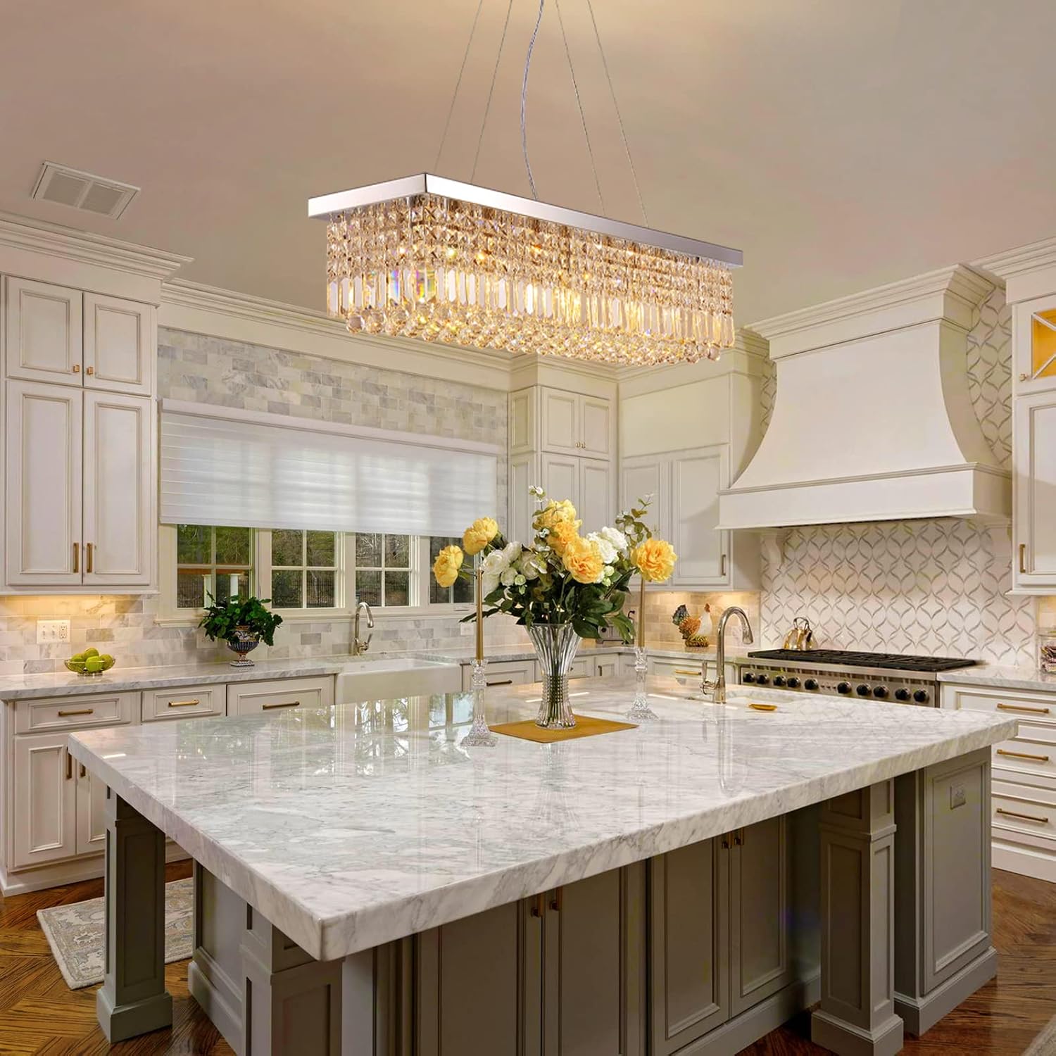 - Modern Crystal Chandelier: Siljoy Rectangle modern crystal chandelier carefully selected high-grade K9 crystal, free of impurities and bubbles, with strong refraction, making the light more translucent. The rectangular chandelier light fixture Combined with the diamond cutting process, angular drop-shaped crystals are formed. Sure to add elegance and sophistication to your home and suit most decorating styles.