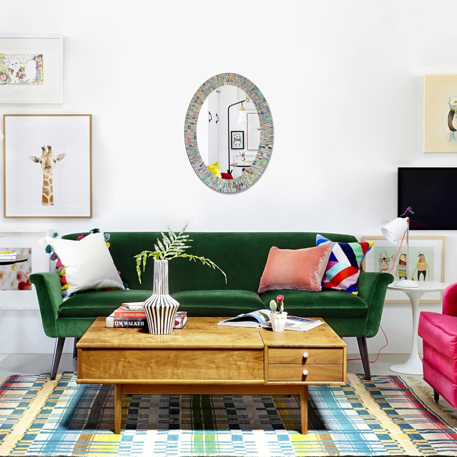 Bohemian Rainbow Wall Mirror -Glass Mosaic Decorative Wall Mirror, Multi Color Spectrum Wall Mountable, Oval Multi-Color Framed Mirror (32 in. x 24 in.)