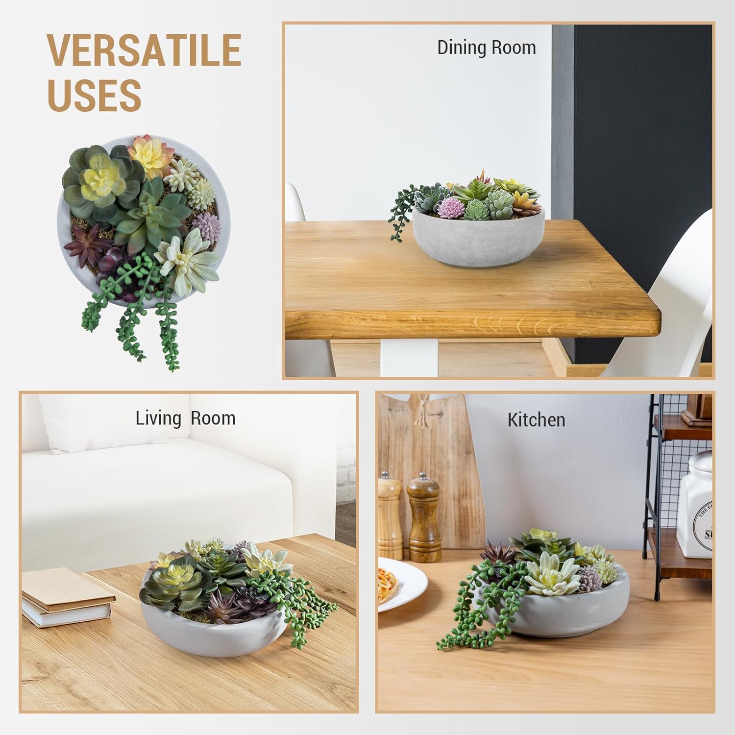 - Beautiful faux succulents potted in a simple gray concrete pot has a sleek industrial look perfect for contemporary decors