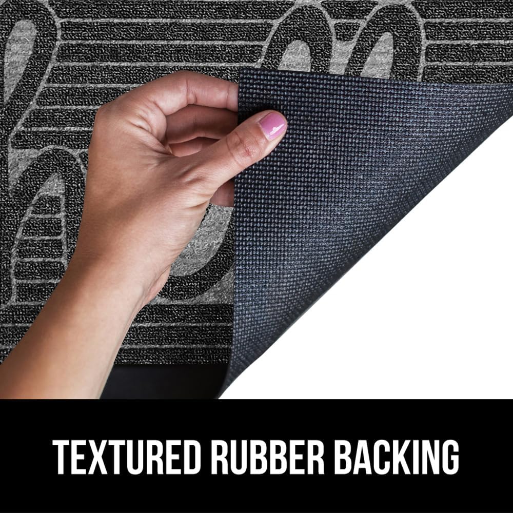 GORILLA GRIP 100% Waterproof All-Season WeatherMax Doormat, US Designed Natural Rubber, Stain and Fade Resistant, Low Profile Indoor Outdoor Door Mats, Easy Clean Patio Mat, 17x29, Charcoal Hello