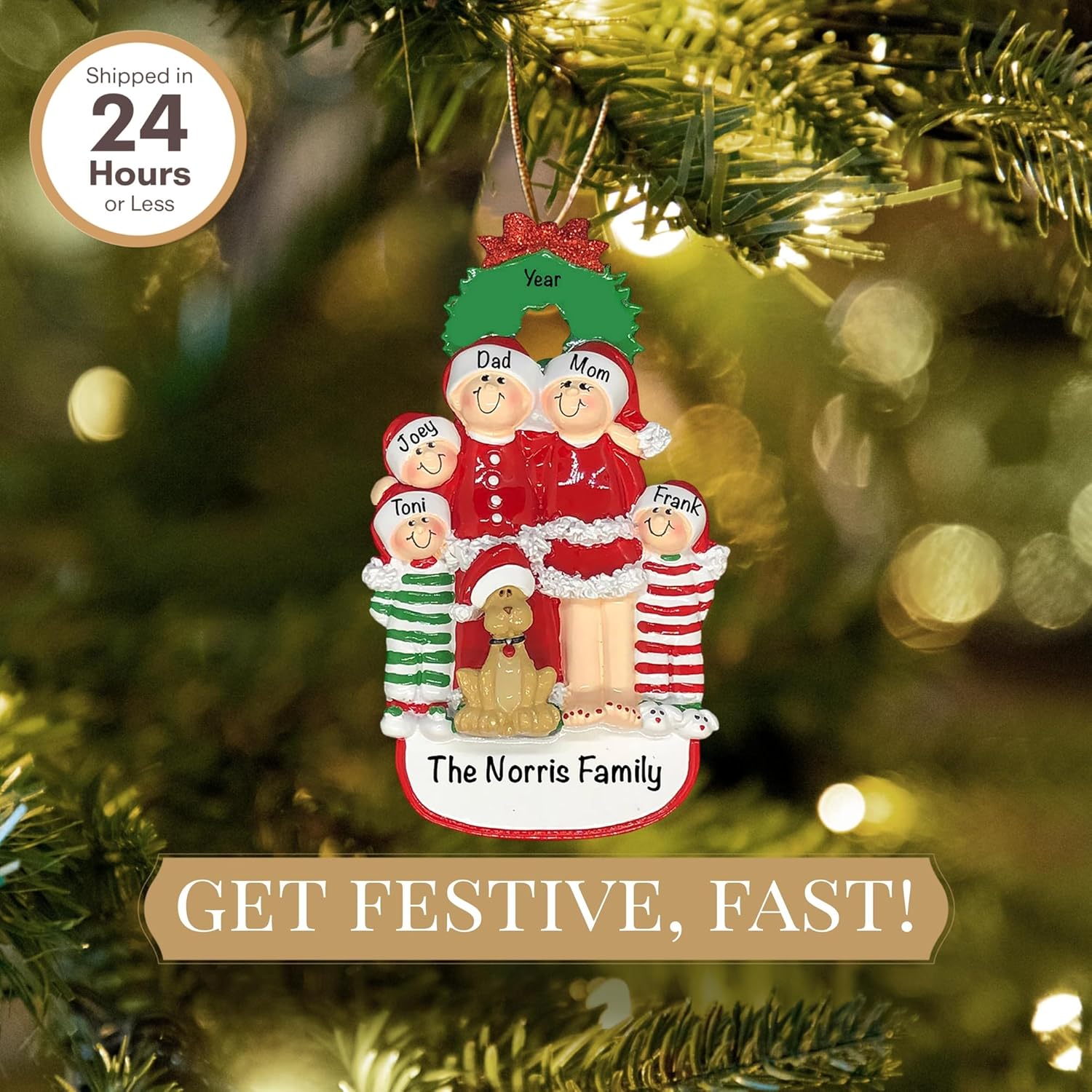 Personalized Family of 5 with Dog Ornament 2025 | Free 24h Customization | Christmas Ornaments for Tree | Custom Gift Wrapped Pet Keepsake for Dog-Lovers