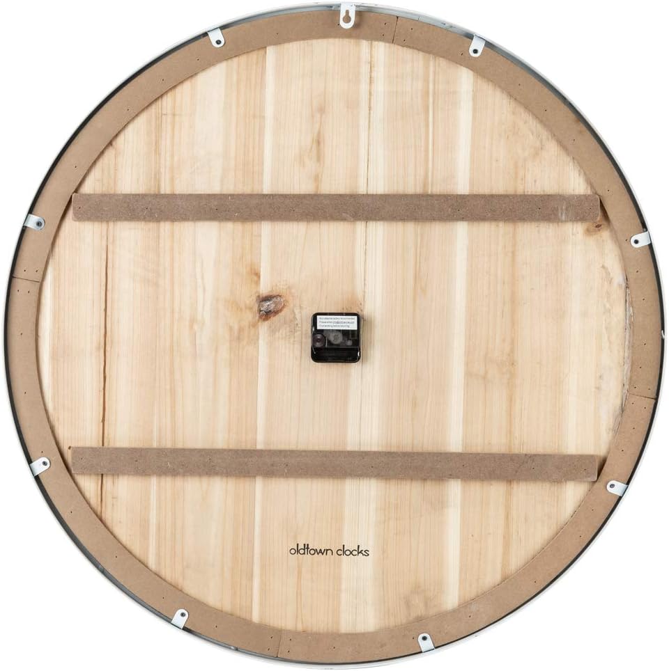 - Note: This is a natural wood product, actual color may varies from picture, some clocks may also have natural wood knots holes or scratch marks which adds to the rustic farmhouse coastal beach look. Clock diameter: 30-inches (75cm) x 1-inch thick. If hands are loose, dangling or stuck, cap loose during shipping, please follow video instructions for hand reinstallation or contact us at email on back of clock.