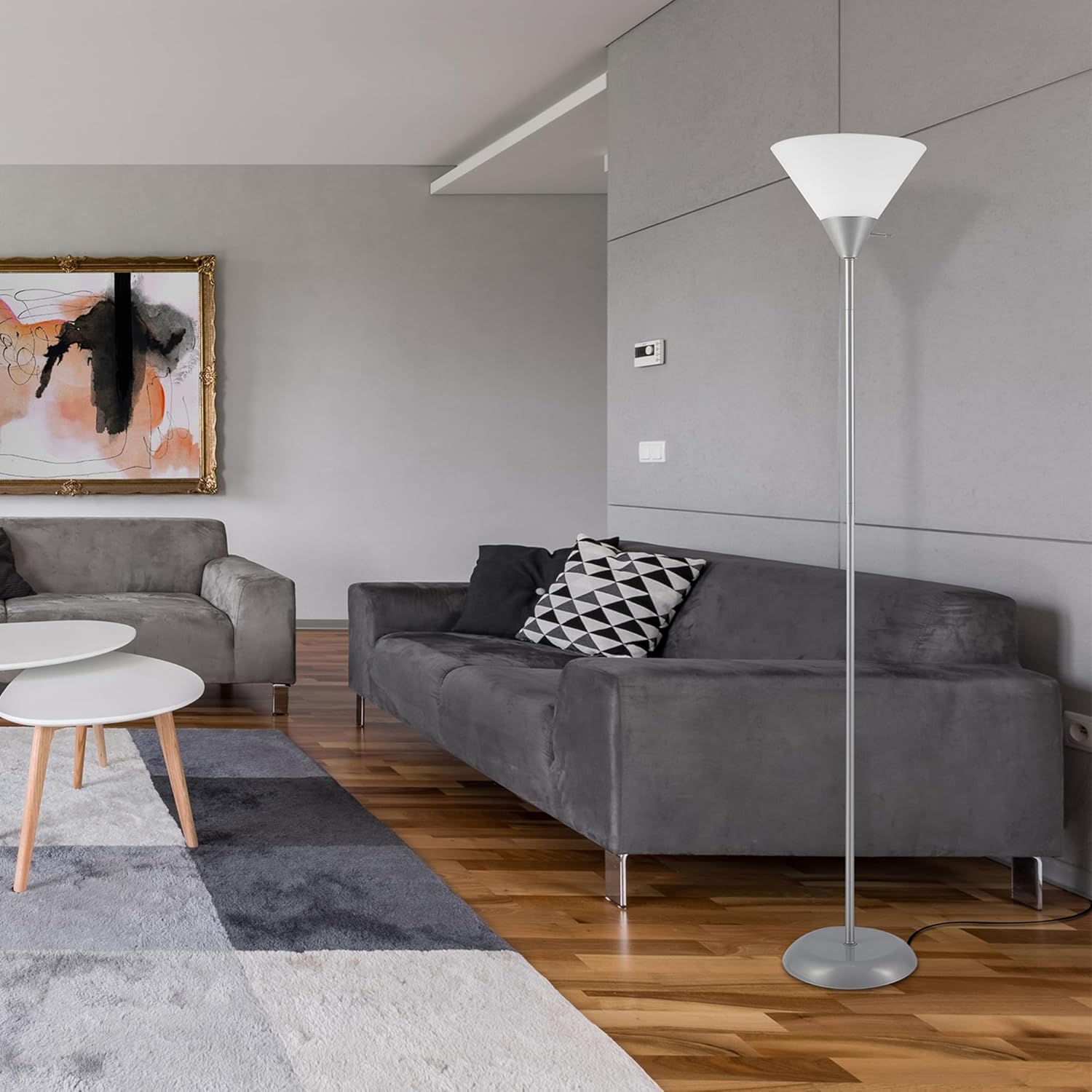 - MODERN CONTEMPORARY STYLE: with a silver finish and a lightweight white shade, the Elliott Floor Lamp brings a modern contemporary style into your home - perfect for a living room, dorm room or dining room