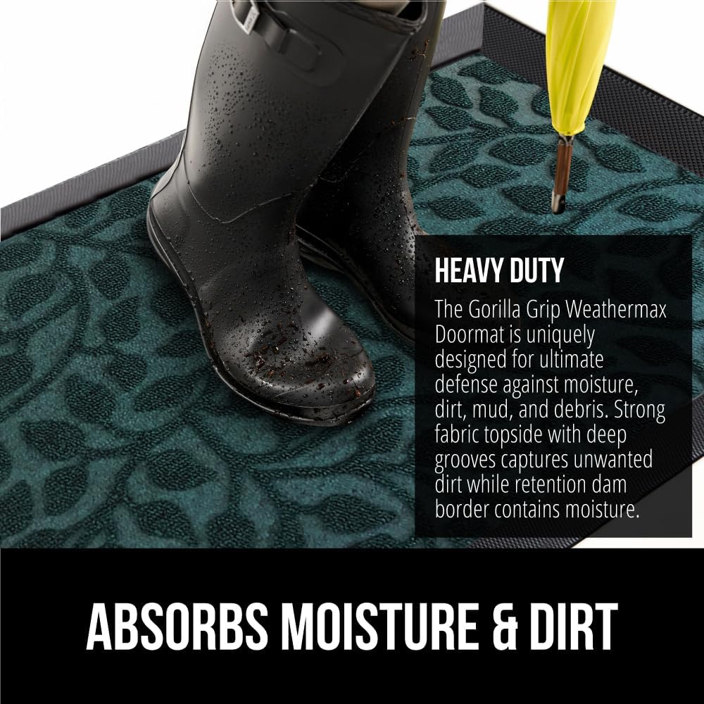 GORILLA GRIP 100% Waterproof All-Season WeatherMax Doormat, 47x35, US Designed Natural Rubber, Stain and Fade Resistant, Low Profile Indoor Outdoor Door Mats, Easy Clean Patio Mat, Moss Vine Leaves