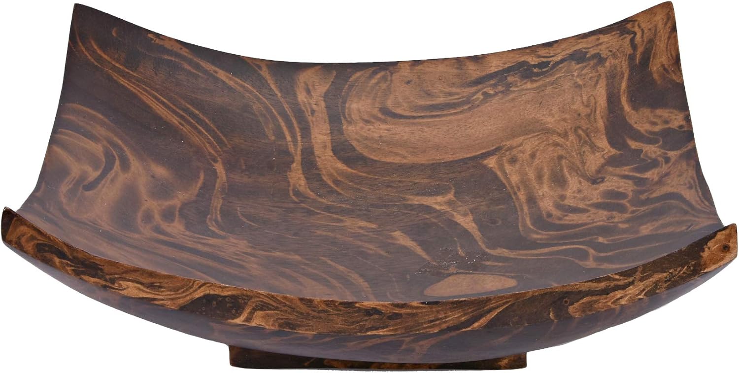AeraVida Square-Shaped Mango Tree Wood with Dark Stain Serving Dish or Fruit Bowl | Wood Decor Bowl