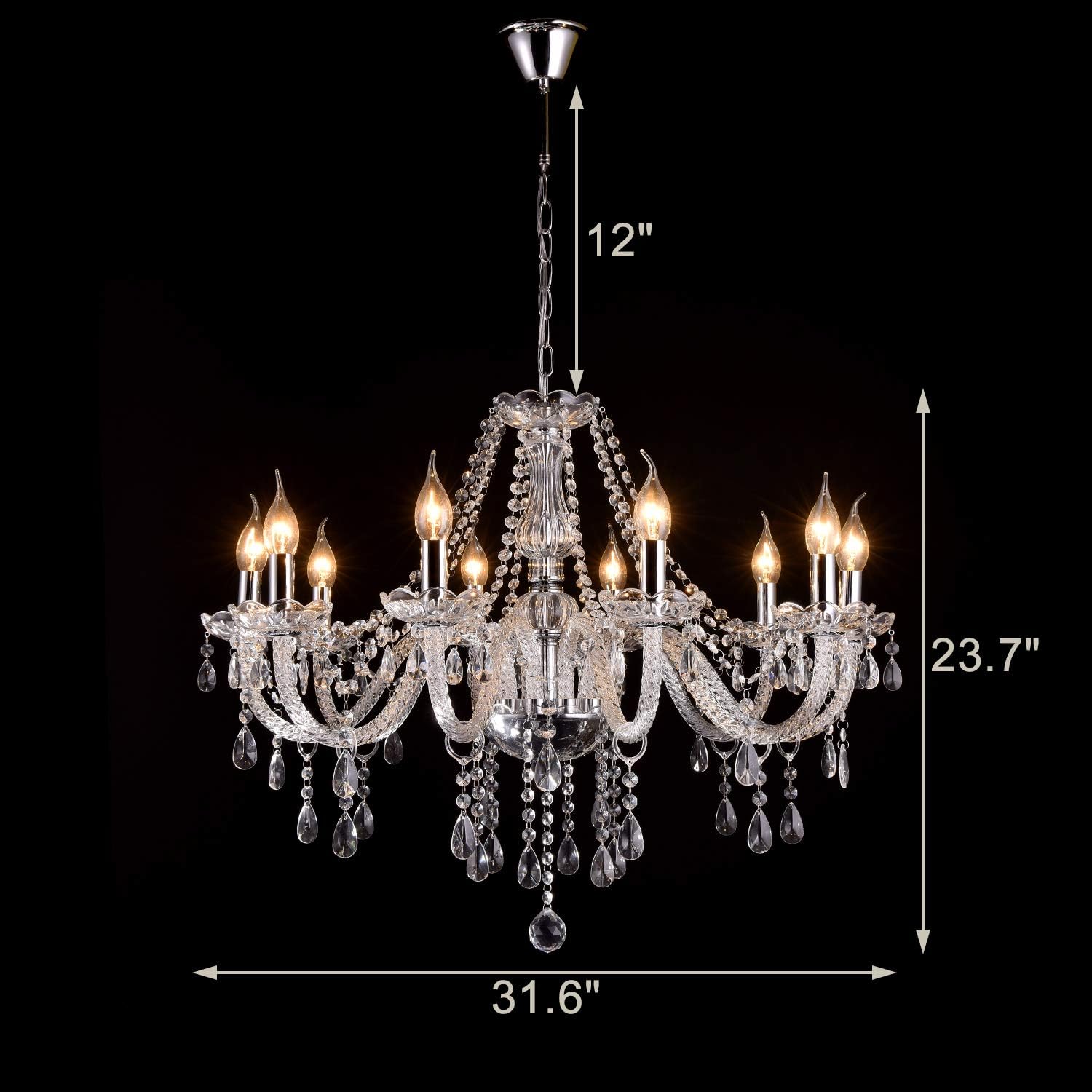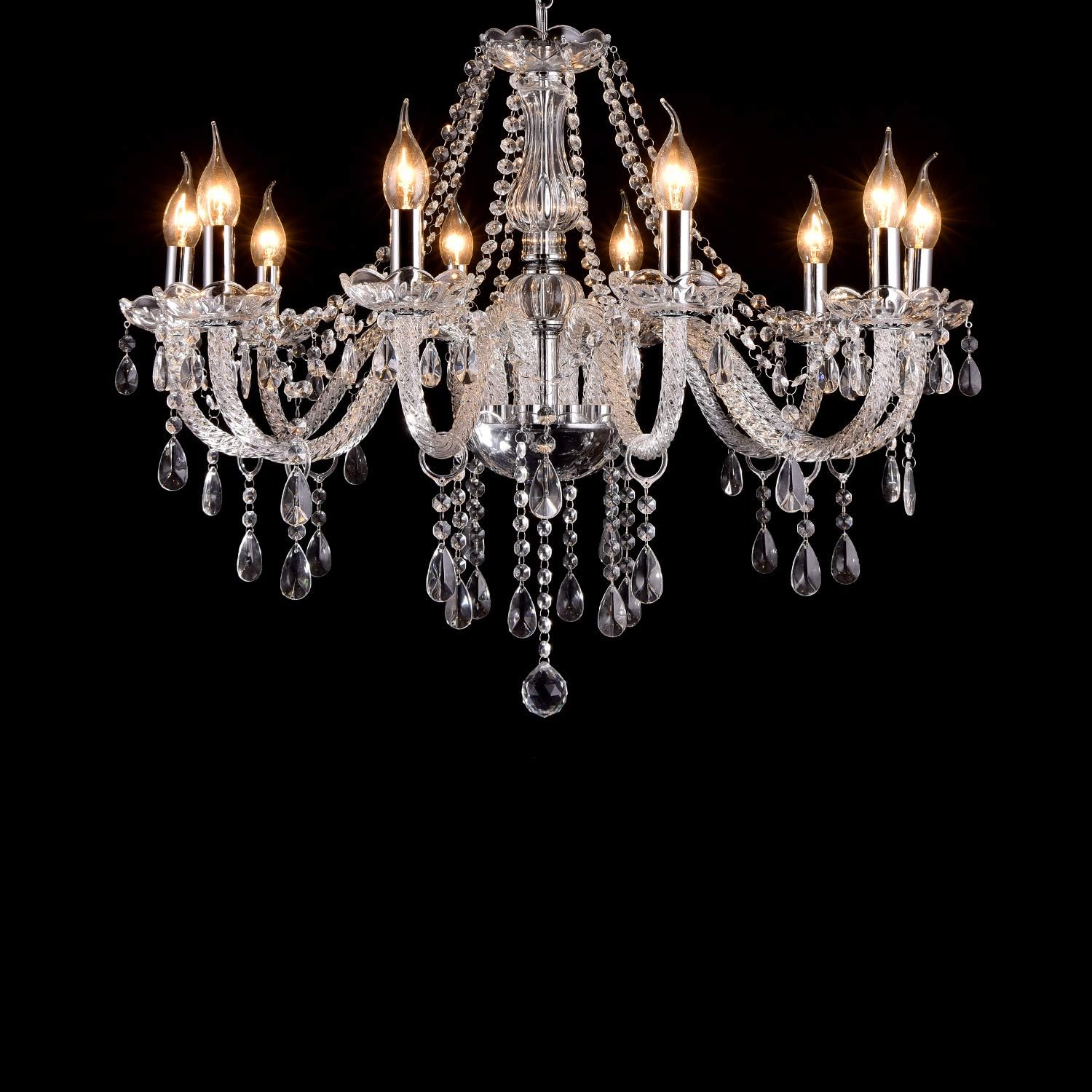 LIUMANG Modern Elegant 10 Lights K9 Crystal Glass Chandelier Pendant Ceiling Lighting European Style for Dining Living Room Bedroom Transparent, 10 E12 Bulbs Required