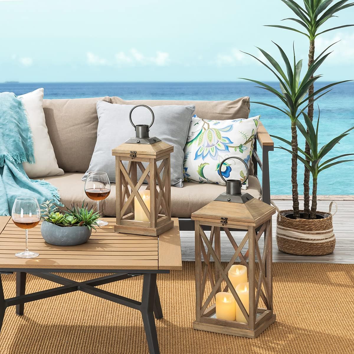 - SOLD AS A SET OF 2 WELL SIZED -- Each lantern measures as follows: the larger 10.24"L * 10.04"W * 24.02"H and the smaller 7.48"L * 7.48"W * 17.32"H inches.(LED CANDLE NOT INCLUDED)