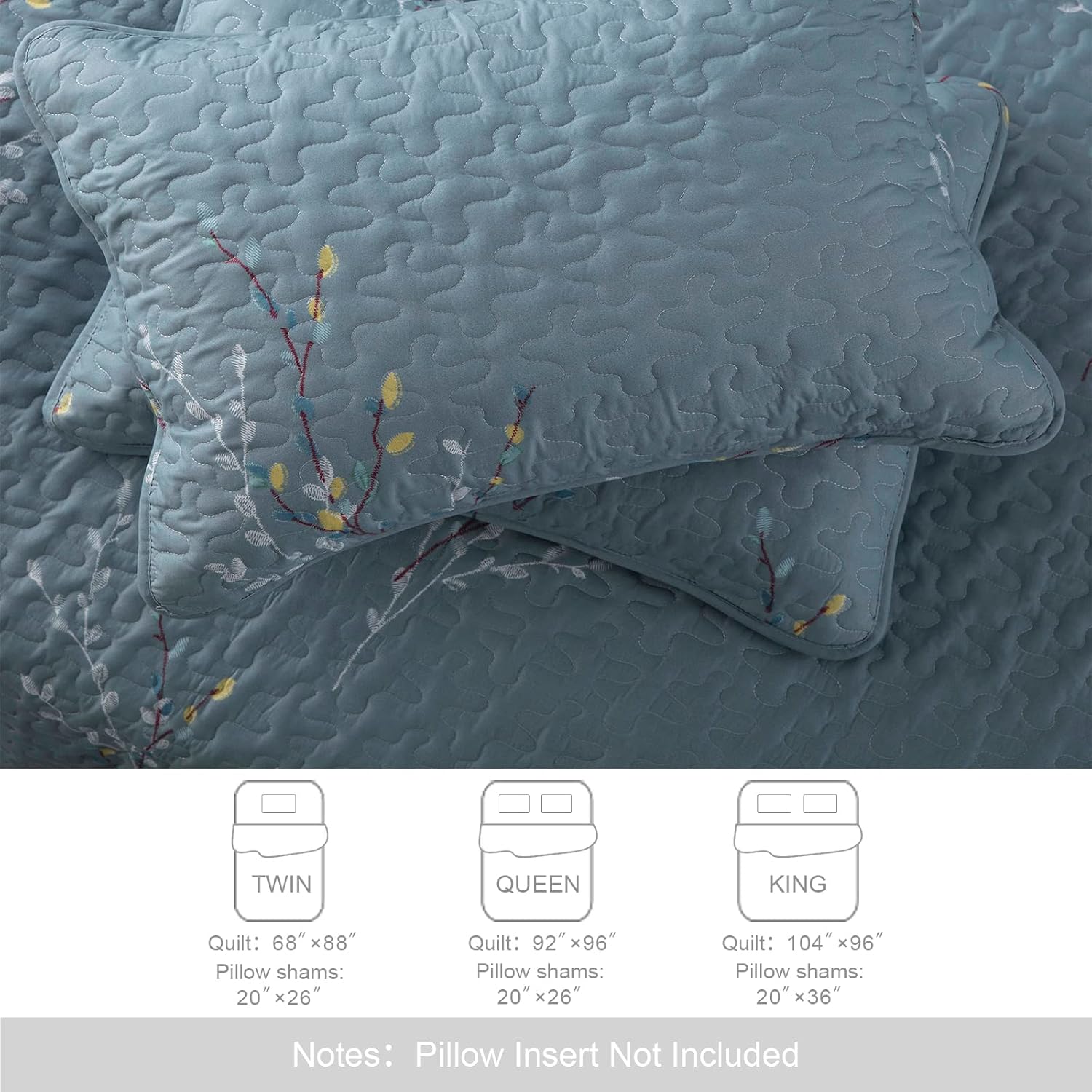 - Design: Floral branches patterns are printed with special printing and dyeing crafts which make color more vibrant and ensure a better color fastness. Sewed with exquisite neat stitching, the blue flowers bedspreads bring a stylish and elegant decoration to your bedroom