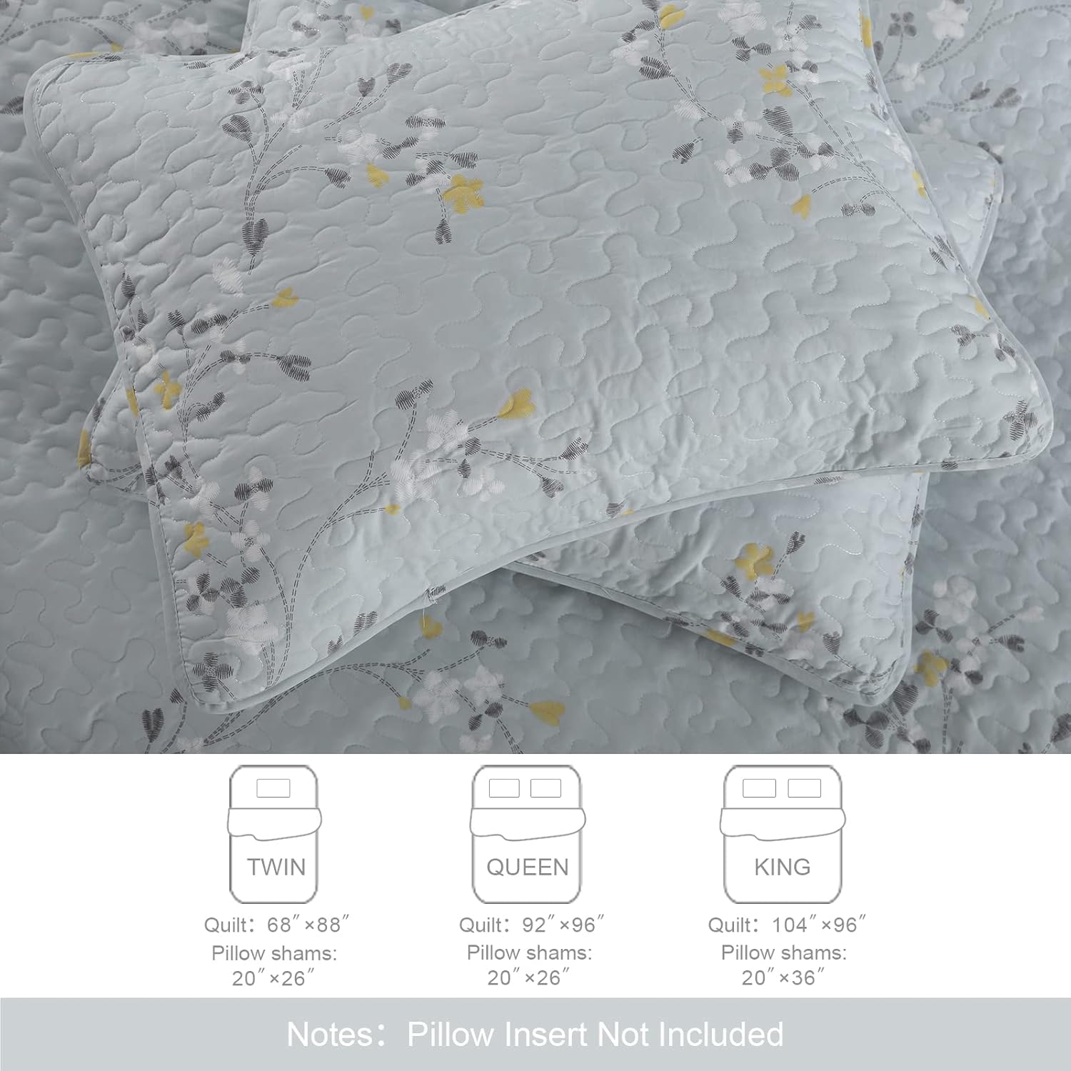 - Premium Material: The floral quilts sets are made of brushed microfiber and filled with polyester which make the quilt ultra-soft, breathable, silk touch, lightweight and suitable for all seasons