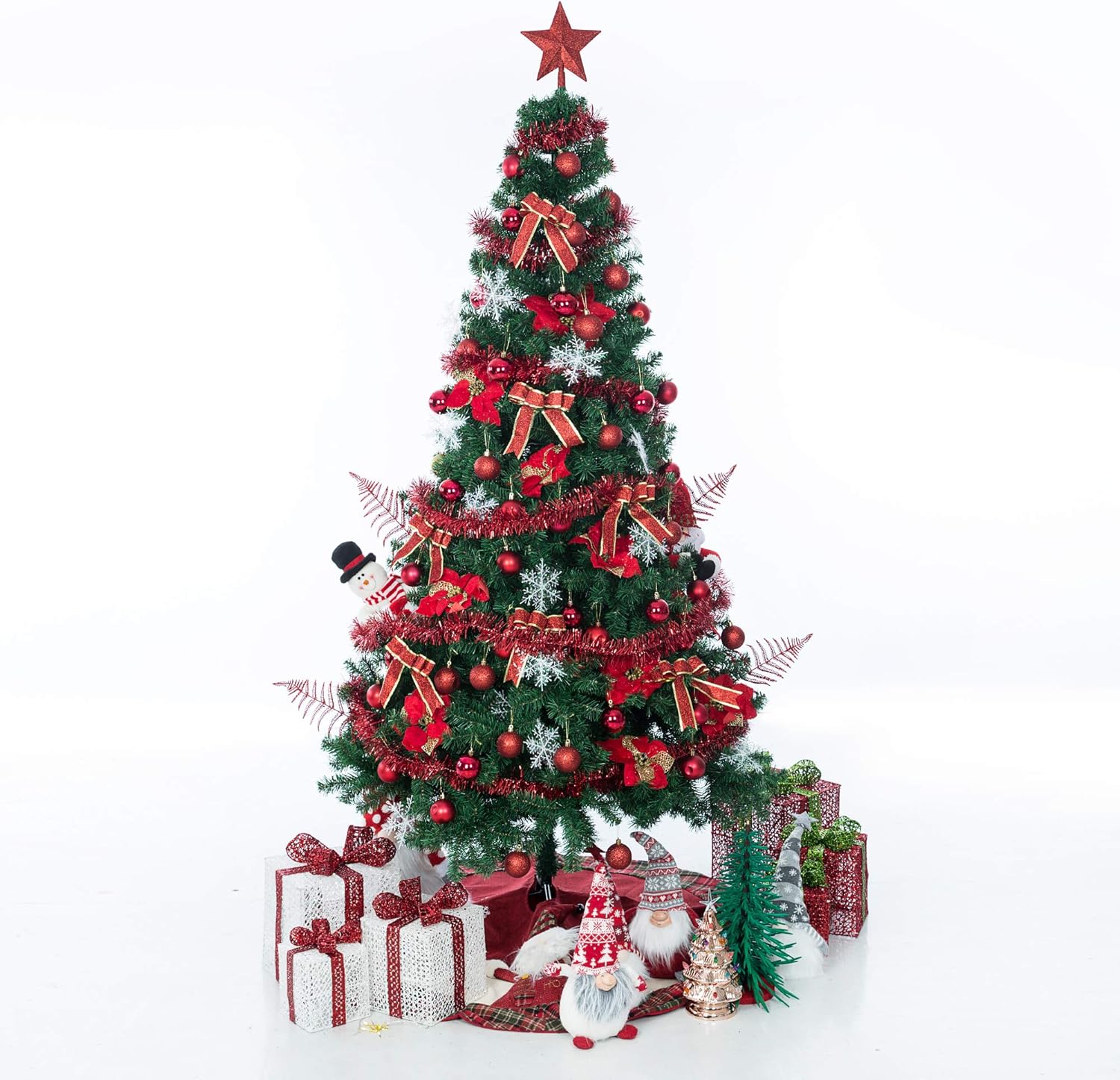 - ★PACKAGE INCLUDE: You will receive 12PCS x artificial poinsettia Christmas flowers, 10PCS x bling-bling bow knot, 1PCS x star Christmas topper, 18PCS x snowflake, 48PCS x3 different styles of Christmas ball (shimmer, matte, shiny), 1PCS x 26.2 ft ribbon and 4PCS x bling-bling phoenix tails leaf.