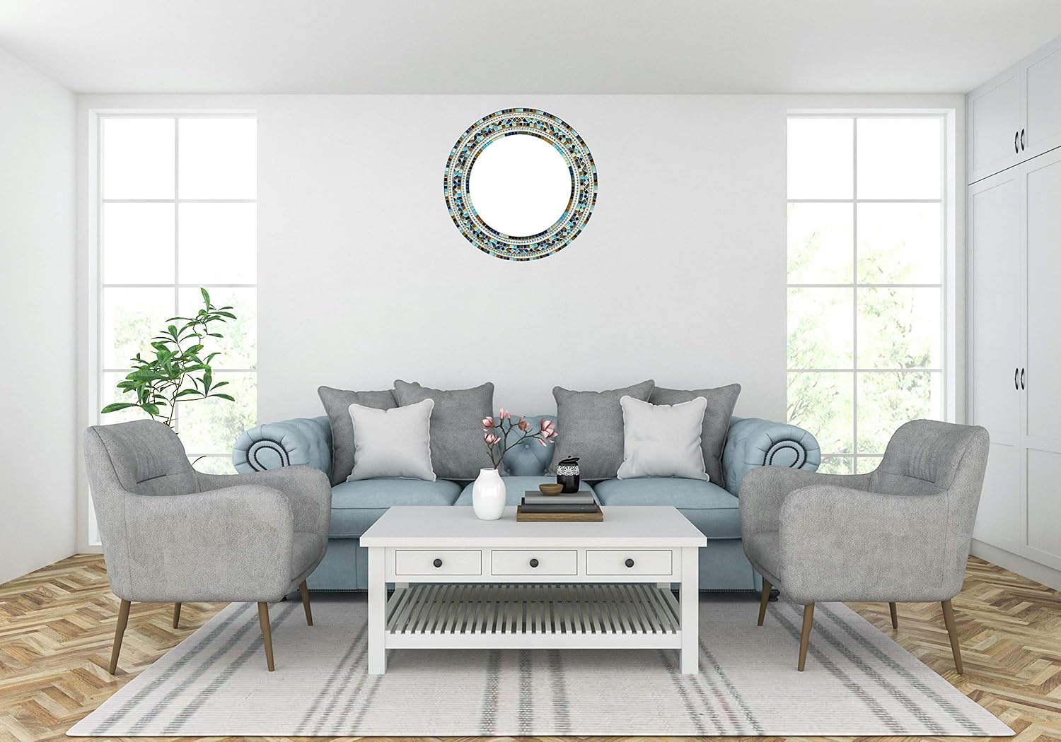 - MIRROR, MIRROR ON THE WALL: Hang this stunning mosaic mirror in your bedroom over your bed or dresser, in your hallway or entryway, over your living room sofa, or as a beautiful vanity mirror in your bathroom.