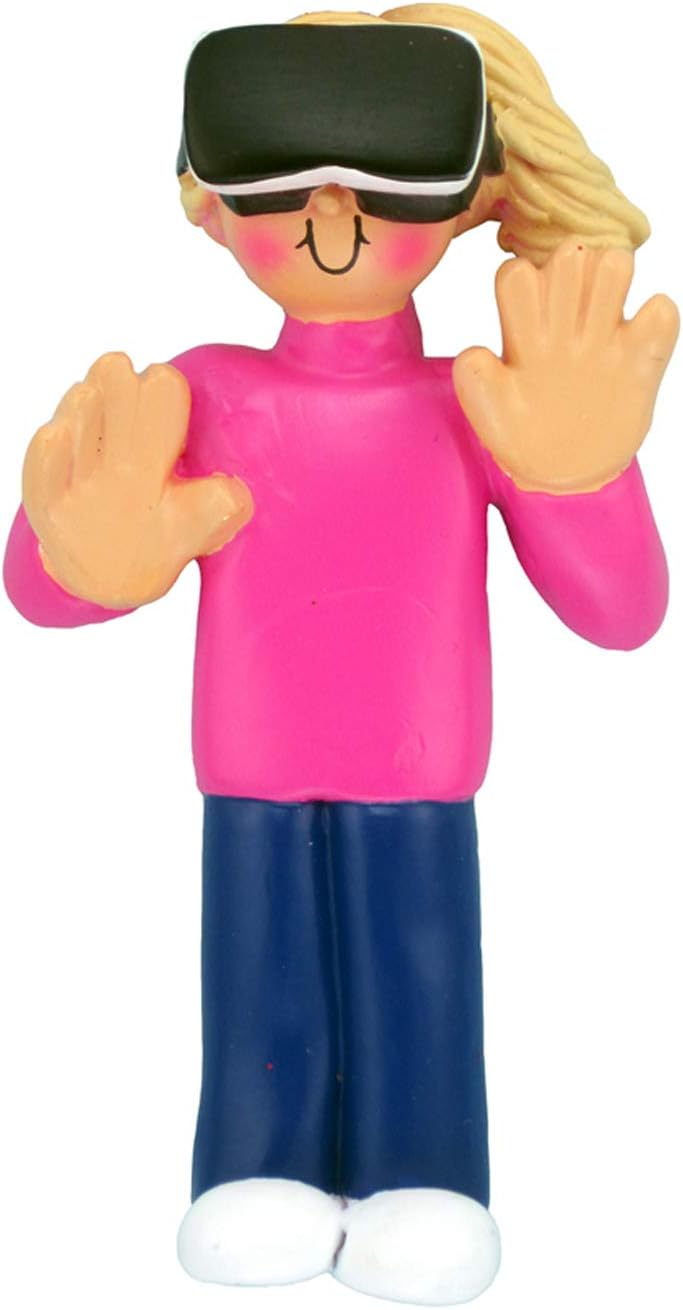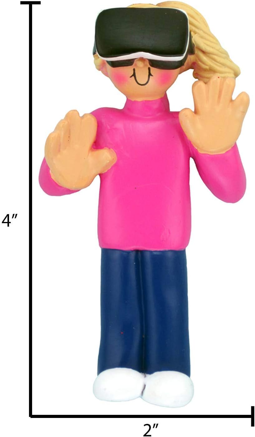 Personalized Video Game Ornament 2024 by Elves - Blonde Girls Gamer VR Christmas Tree Decoration