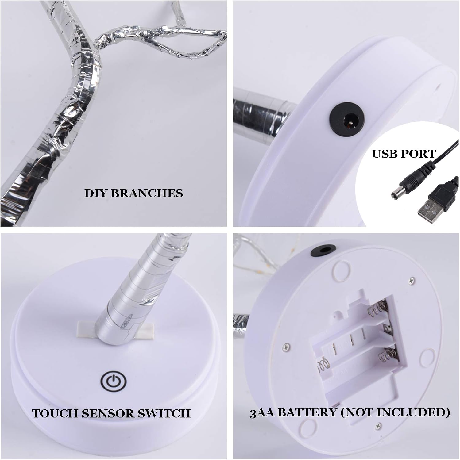 - ➤【High-quality LED Tree Lamp】 LED tree lamp are composed of 108 LED copper wire string lights, touch sensor switches, ABS bases, and artificial branches. Operated by USB or 3 AA batteries, LED bulbs will not generate heat for a long time, safe and energy saving and save money. This LED tree light is a necessary decorative night light for your bedroom.