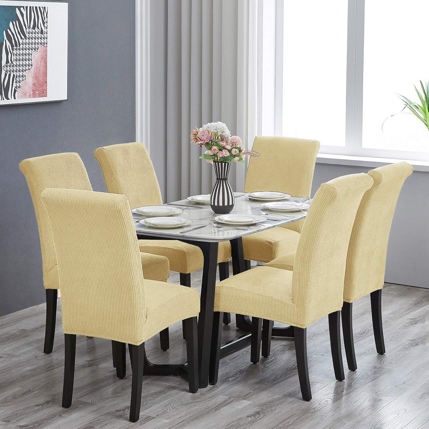 Howhic Stretch Chair Covers for Dining Room Set of 2, Removable Washable Dining Room Chair Covers, Dining Chair Slipcovers Seat Protector, Great Decoration for Home and Banquet (Champagne, 2 Pack)