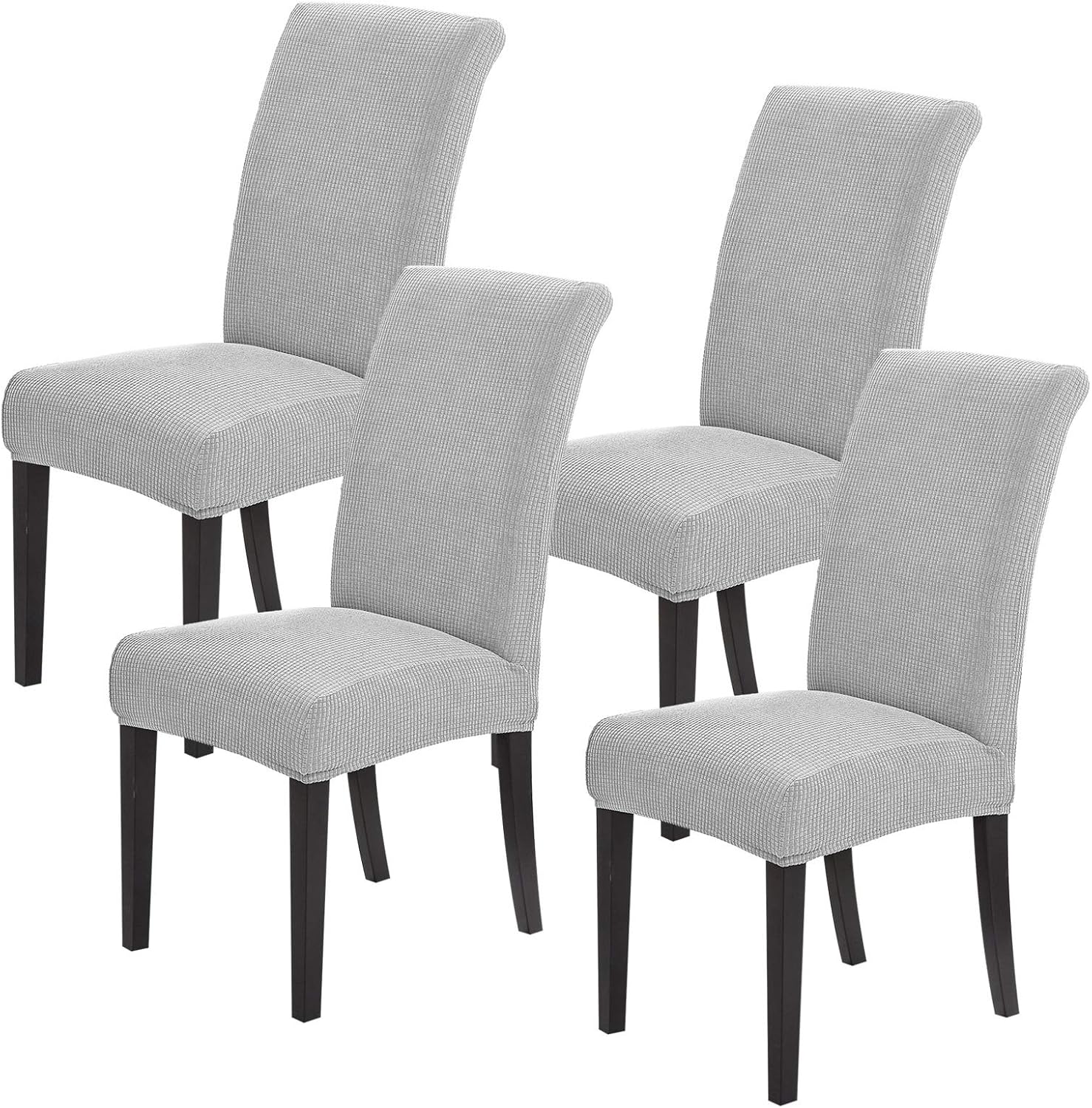 Joccun Chair Covers for Dining Room Set of 4, Dining Chair Slipcovers Stretch Dining Room Chair Covers Seat Protector,Washable Parsons Chair Cover for Home,Hotel,Banquet(Silver,4 Pack)