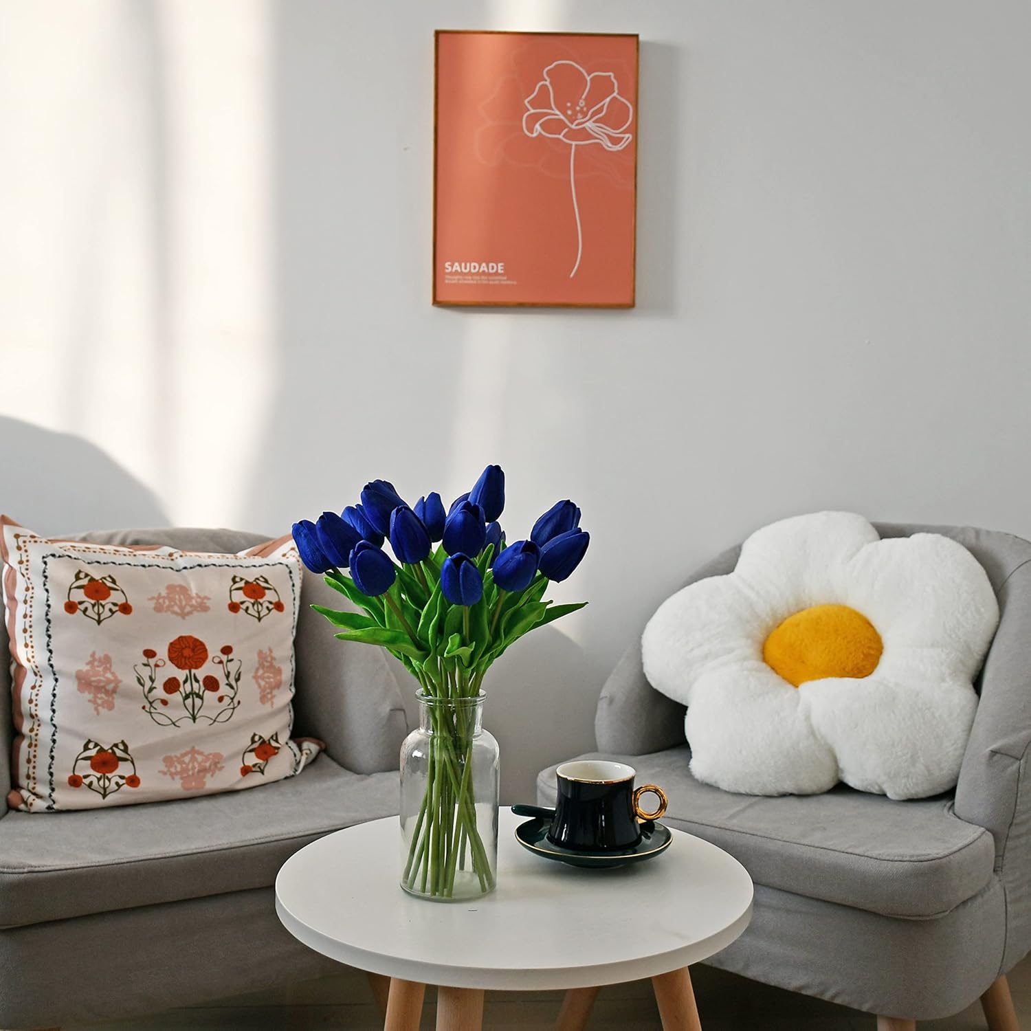 Mandy's Artificial Tulips 20 Stems Royal Blue PU Faux Flowers for Wedding Home Decor 13.5 Inch