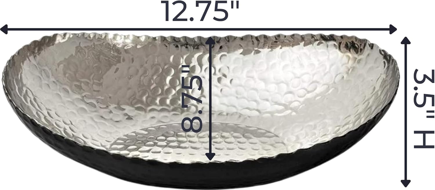 - PERFECT SIZE FOR HOME DECOR: Measuring 12.75 x 8.75 x 3.5 inches, this large decorative bowl is ideal for both practical use and stylish display. Great as a modern fruit bowl, decor bowl, or key dish bowl for entryway table—a standout addition to any room. Its hammered design and exquisite finish make it an attractive centerpiece for any kitchen countertop, dining table, or coffee table, adding a touch of sophistication to your home decor.