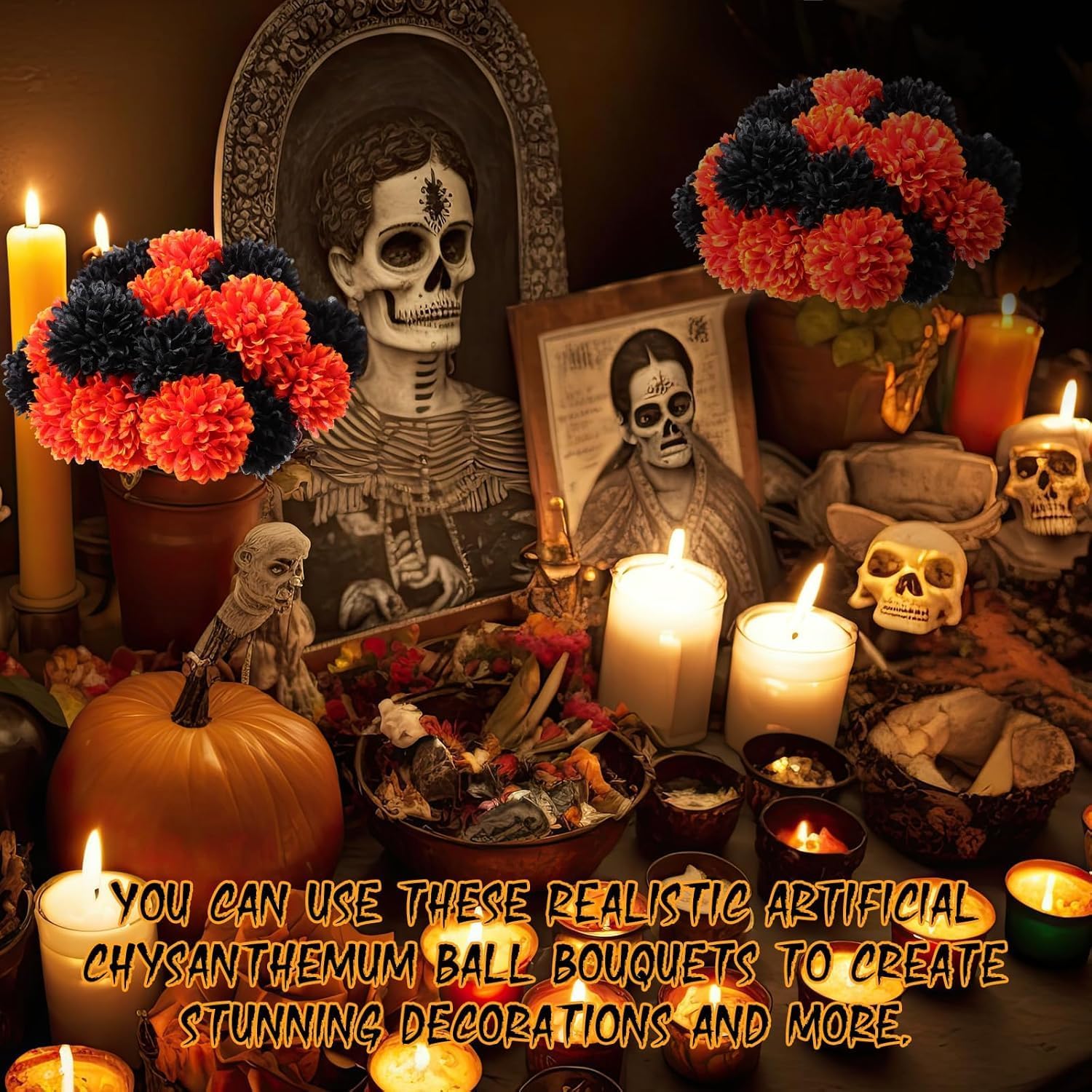 Kimura's Cabin 20Pcs Orange Fake Mums Flowers Artificial Silk Chrysanthemums Faux Ball Flower for Wedding Arrangement Fall Bouquets Home Table Decoration Halloween Decor(Orange)
