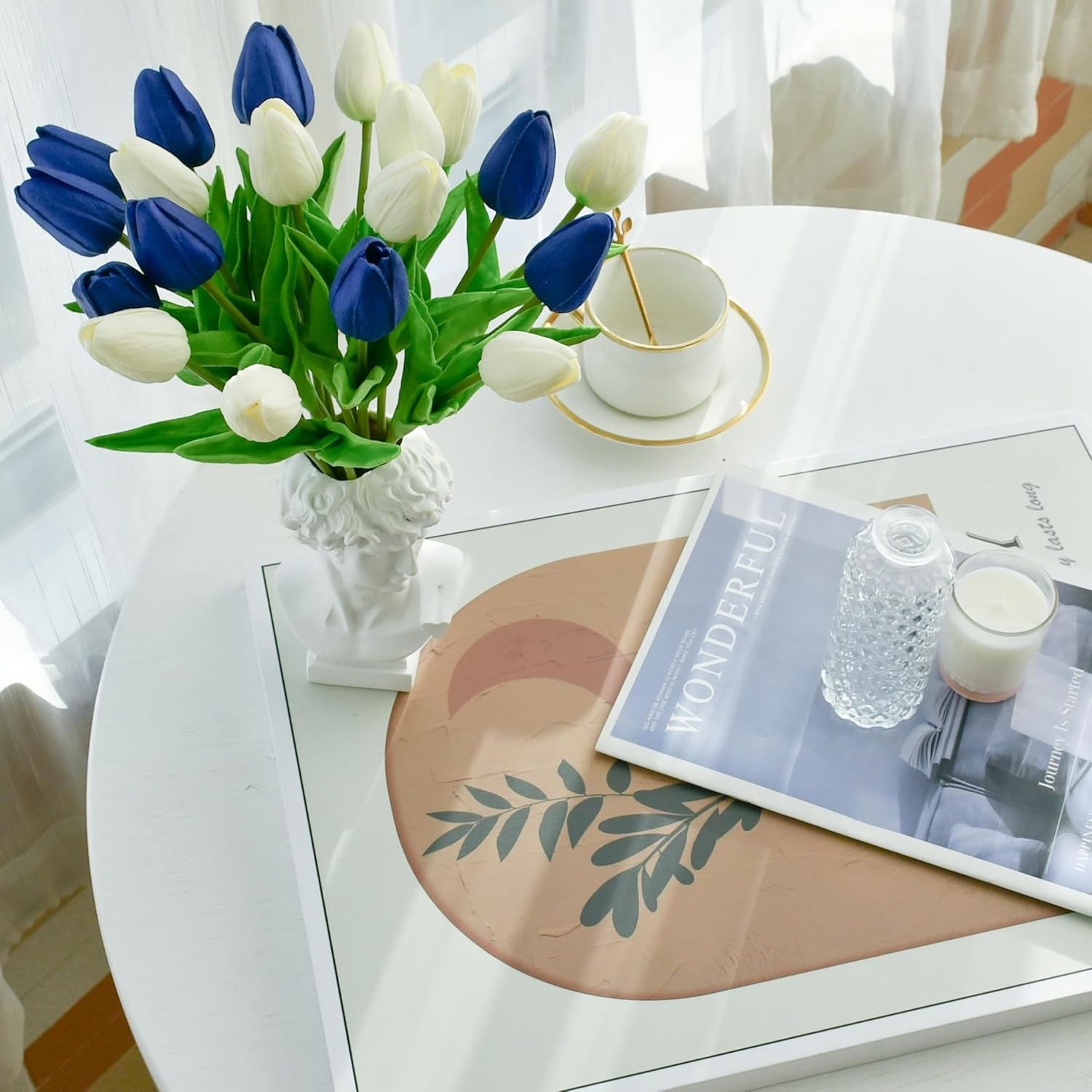 - All-Season Beauty with Gentle Color Care.These tulips bring timeless charm to Easter, Mother’s Day, weddings, or year-round décor. To preserve the soft tones of light-colored flowers—especially white—we recommend avoiding direct sunlight for long-term (6+ months) display, as PU petals may naturally yellow over time.
