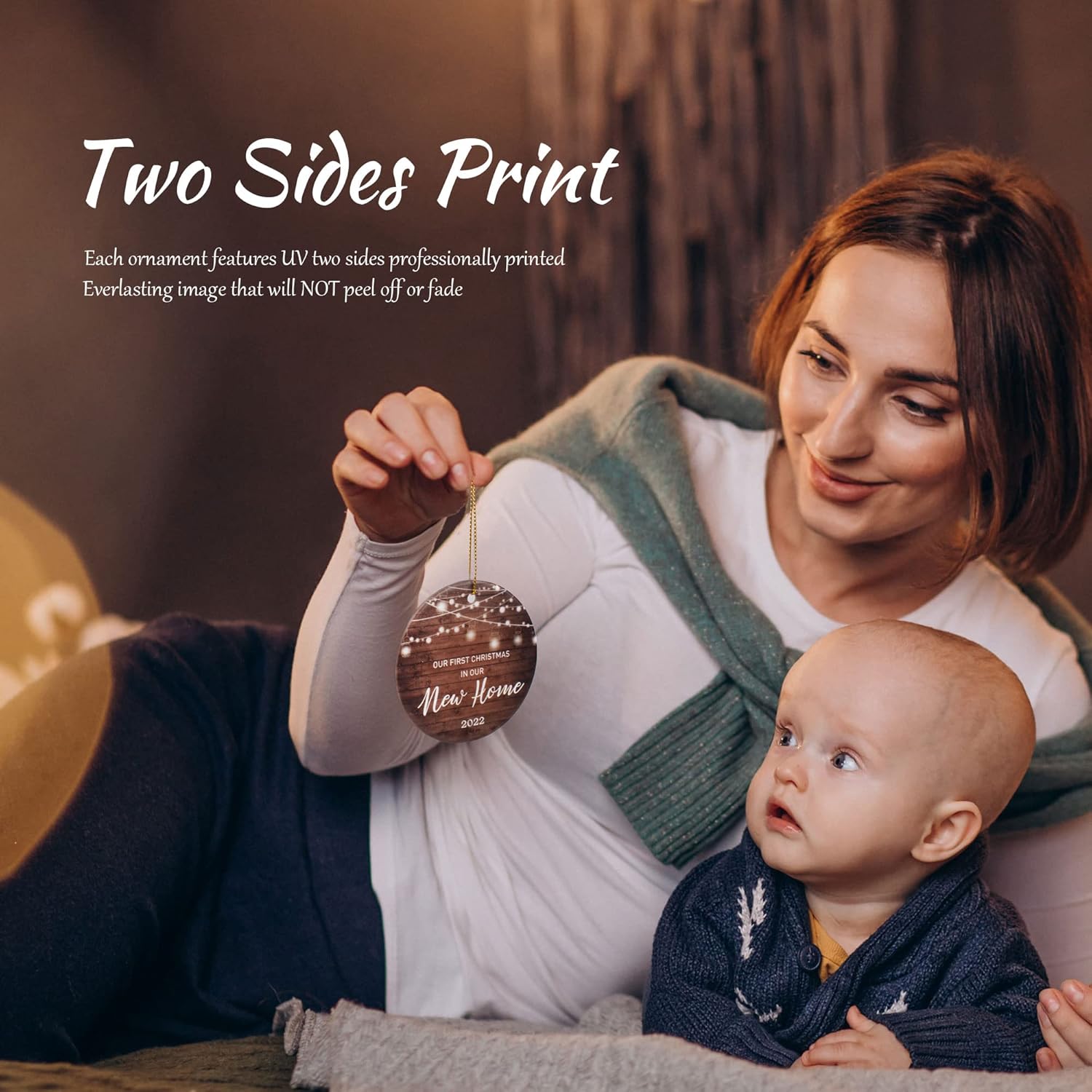 - This ornament adds an elegant touch to your Christmas decor! Each ornament features UV two sides professionally printed. The designs are permanently pressed directly onto the Christmas ornament (NOT decals or stickers) creating an everlasting image that will NOT peel off or fade
