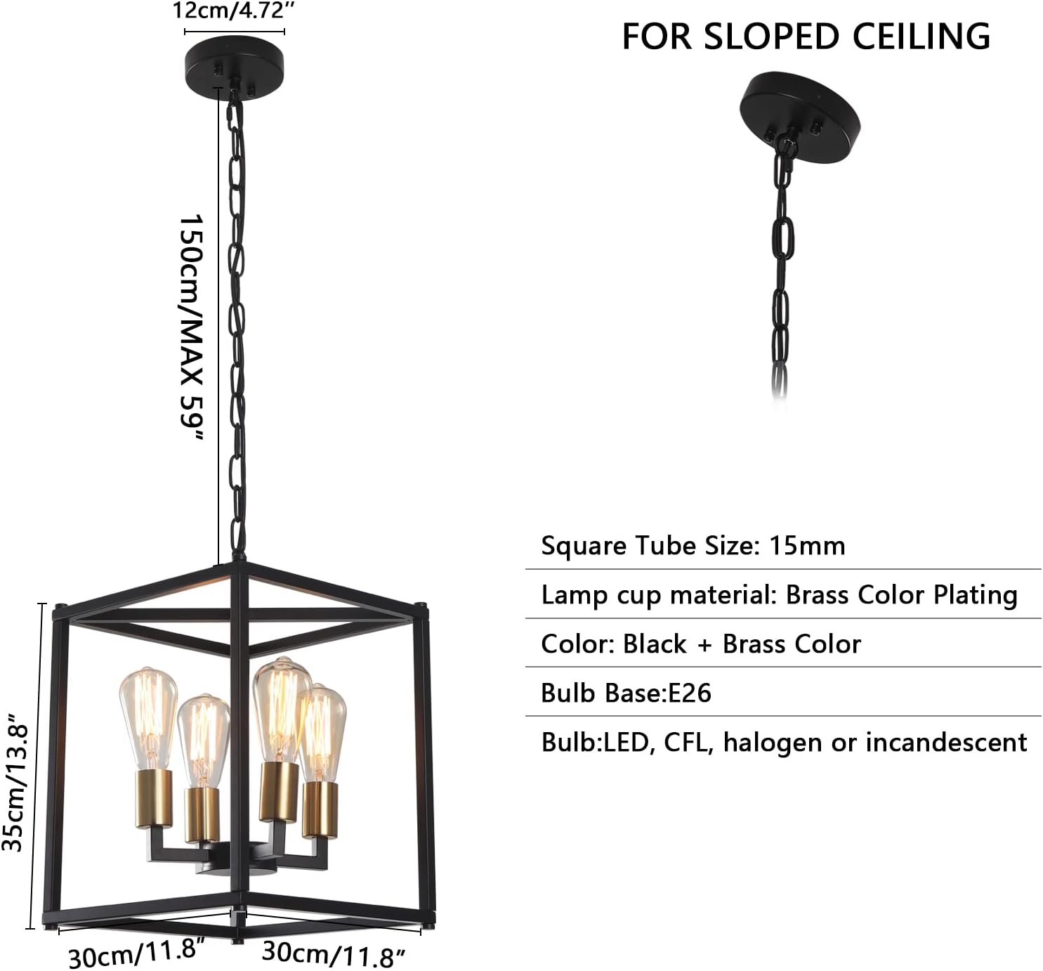 - 【Easy Installation】: The pendant light fixtures includes all hardware, which is easy to install. First insert the lamp cup into the pole, then screw the black square frame with the screws, connect the chain, and finally fix the chandelier on the ceiling.