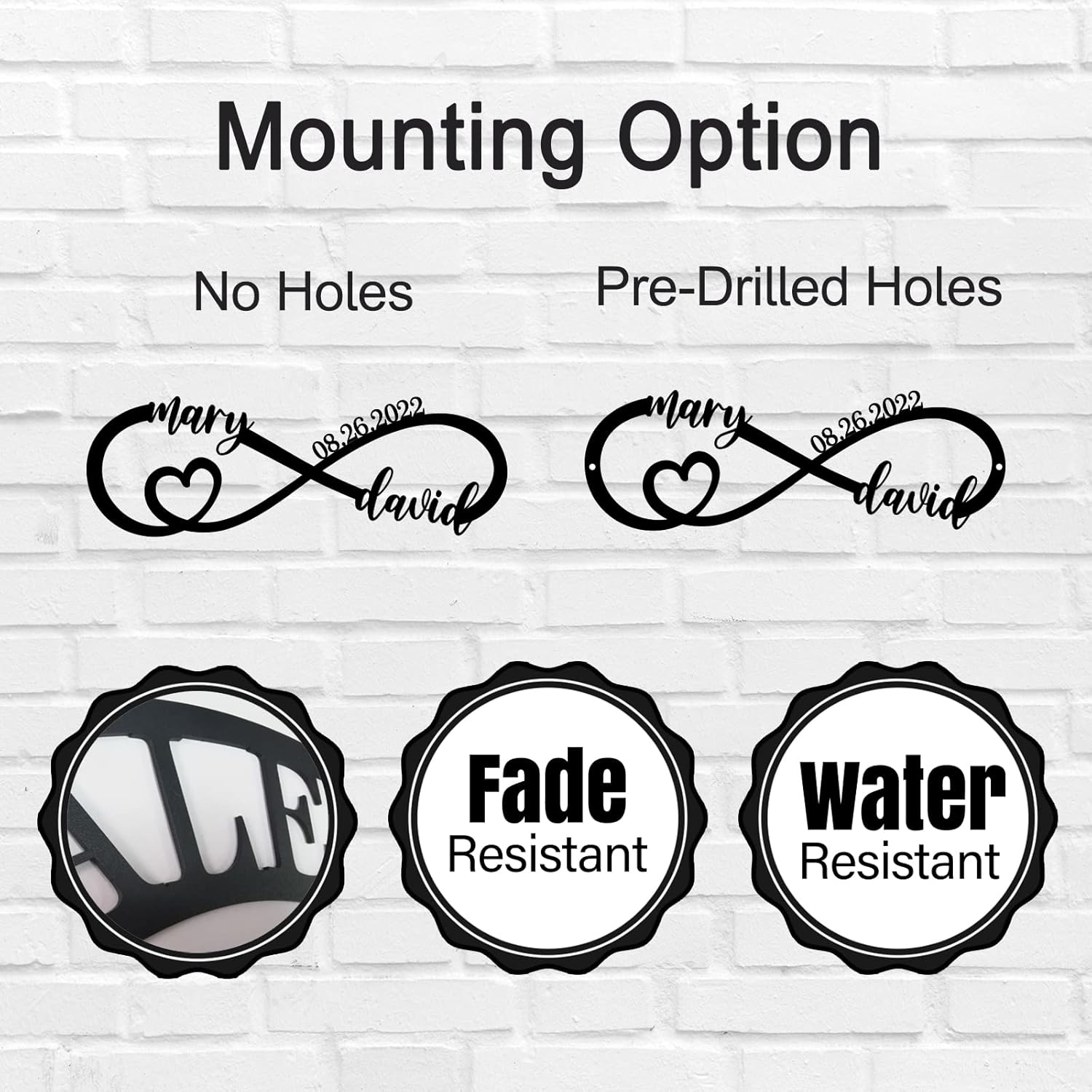 - 💕Premiun Material:This personalized metal name sign is cut by the top of the line laser technology to ensure precise design! The metal infinity plaque sign is made of heavy duty 14 gauge steel and finished in a super tough baked on powder coat paint, which is not only elegant but made to last.We can assure you the quality is perfection as we take great pride in making these.