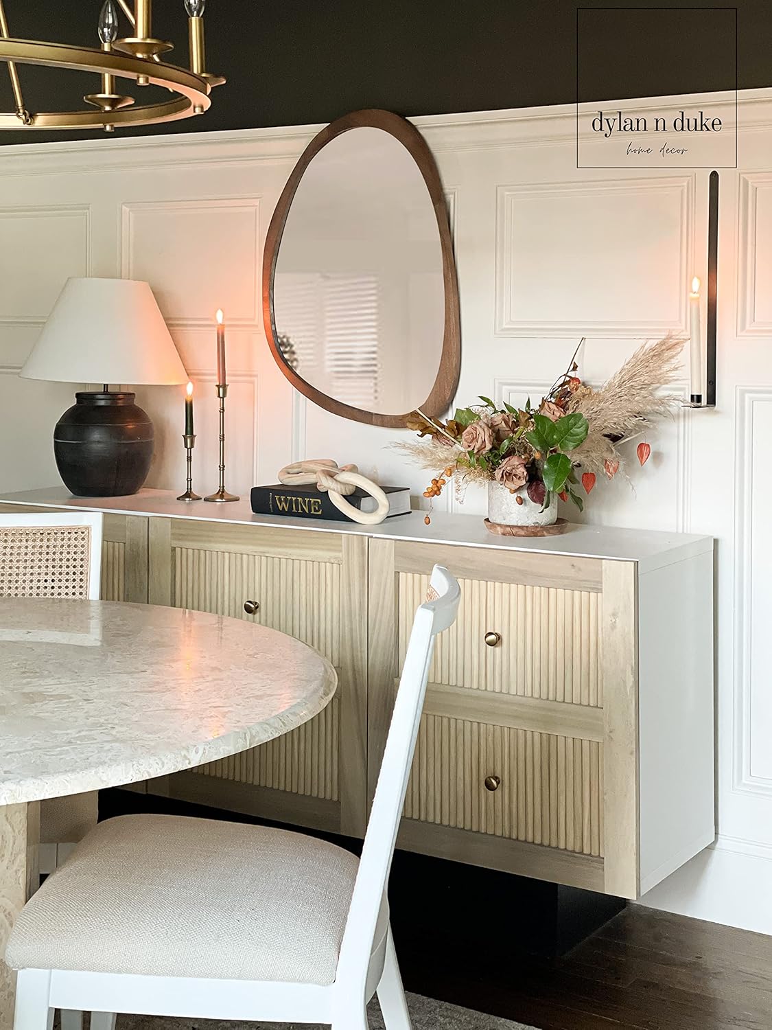 - [MID-CENTURY AESTHETIC DECOR] Celebrating the beauty of imperfection, this wood framed wall mirror is distinguished by its striking asymmetrical design. Crafted of beautiful wood, its fluid, undulating form feels at once organic and elegant, creating a one-of-a-kind focal point in your interior. Inspired by Italian mid-century design.