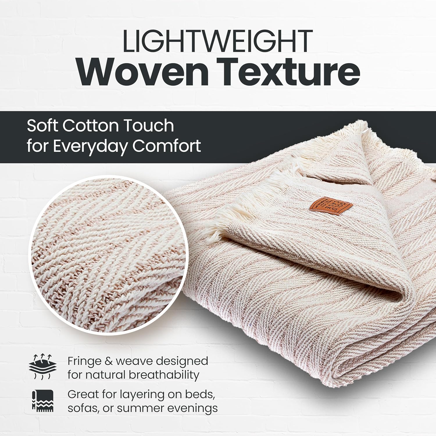 - LIGHTWEIGHT LAYERS FOR RELAXED MOMENTS: Woven from 100% recycled Turkish cotton, this breathable and cute throw blanket adds a soft, textured touch to your space; made for layering on the couch, tossing over your shoulders, or adding a laid-back look to your decor
