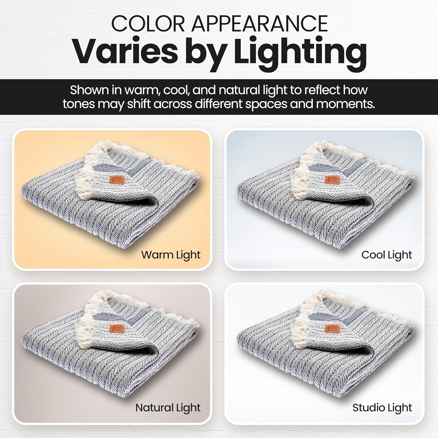 - CELEBRATE SUSTAINABLE STYLE: Made in Turkiye with recycled cotton, this couch throw blanket brings eco-conscious comfort to your home; the soft weave and fringe detail give this couch blanket a rustic, decorative touch that layers beautifully in any space