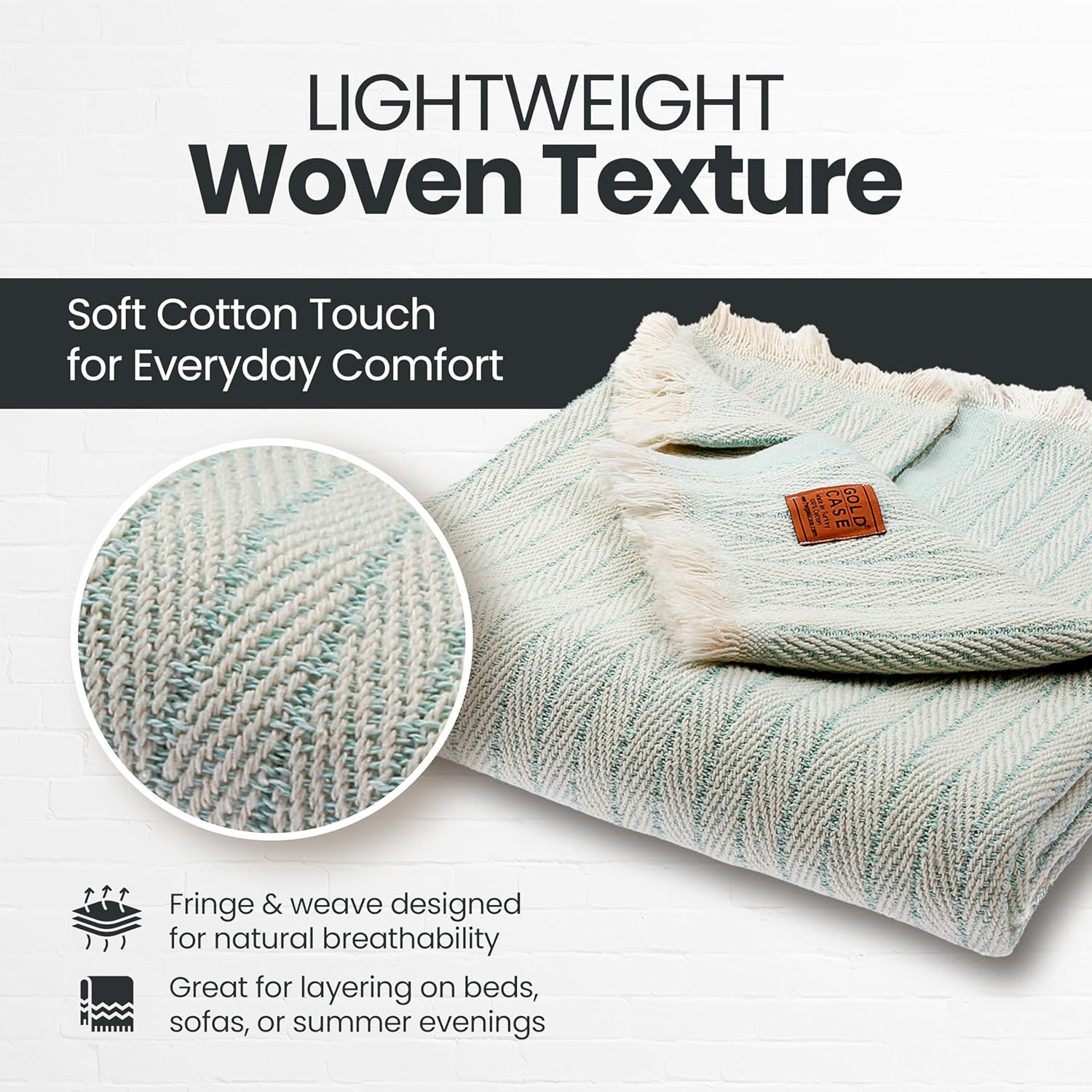 Gold Case Throw Blanket for Couch – 100% Recycled Turkish Cotton Blankets & Throws – Elegant Decorative Throw Blankets for Living Room Sofa – Woven Throws for Couch – Aqua – 60x80