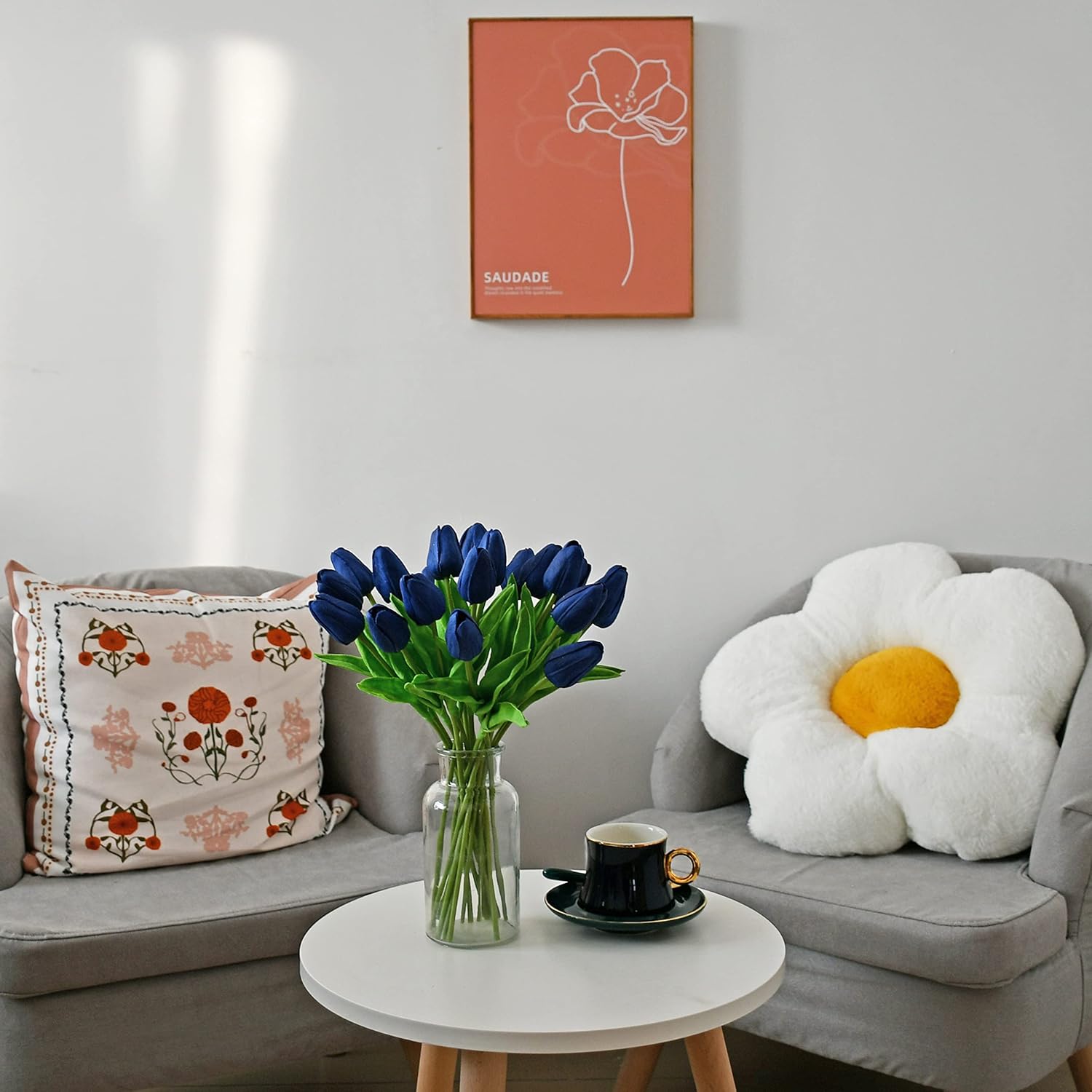 Mandy's Artificial Tulips 20 Stems Navy Blue PU Faux Flowers for Wedding Home Decor 13.5 Inch
