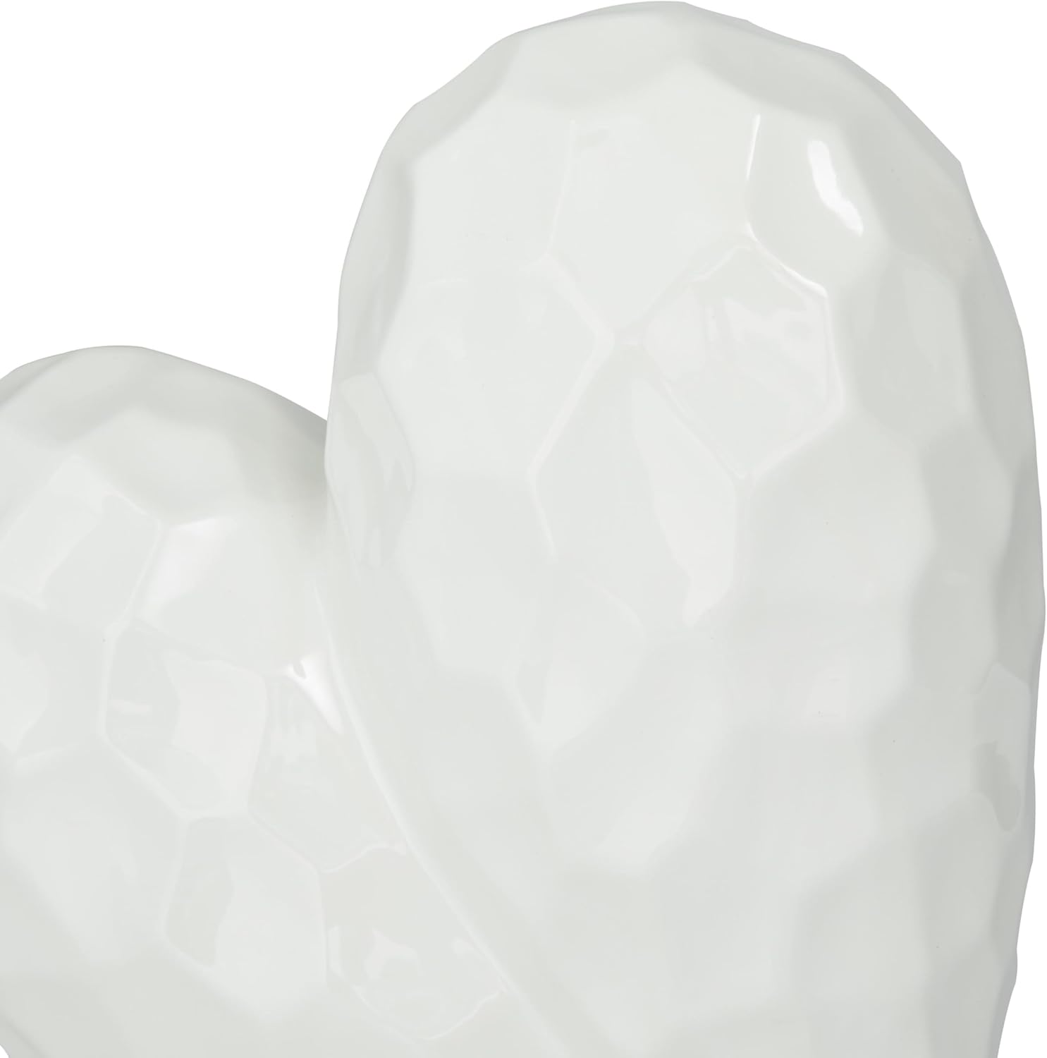 - HEART ASYMMETRICAL ACCENT STATUE: The porcelain sculpture showcases a slanted heart figure with a faceted and concave design exterior, adding unique visual interest