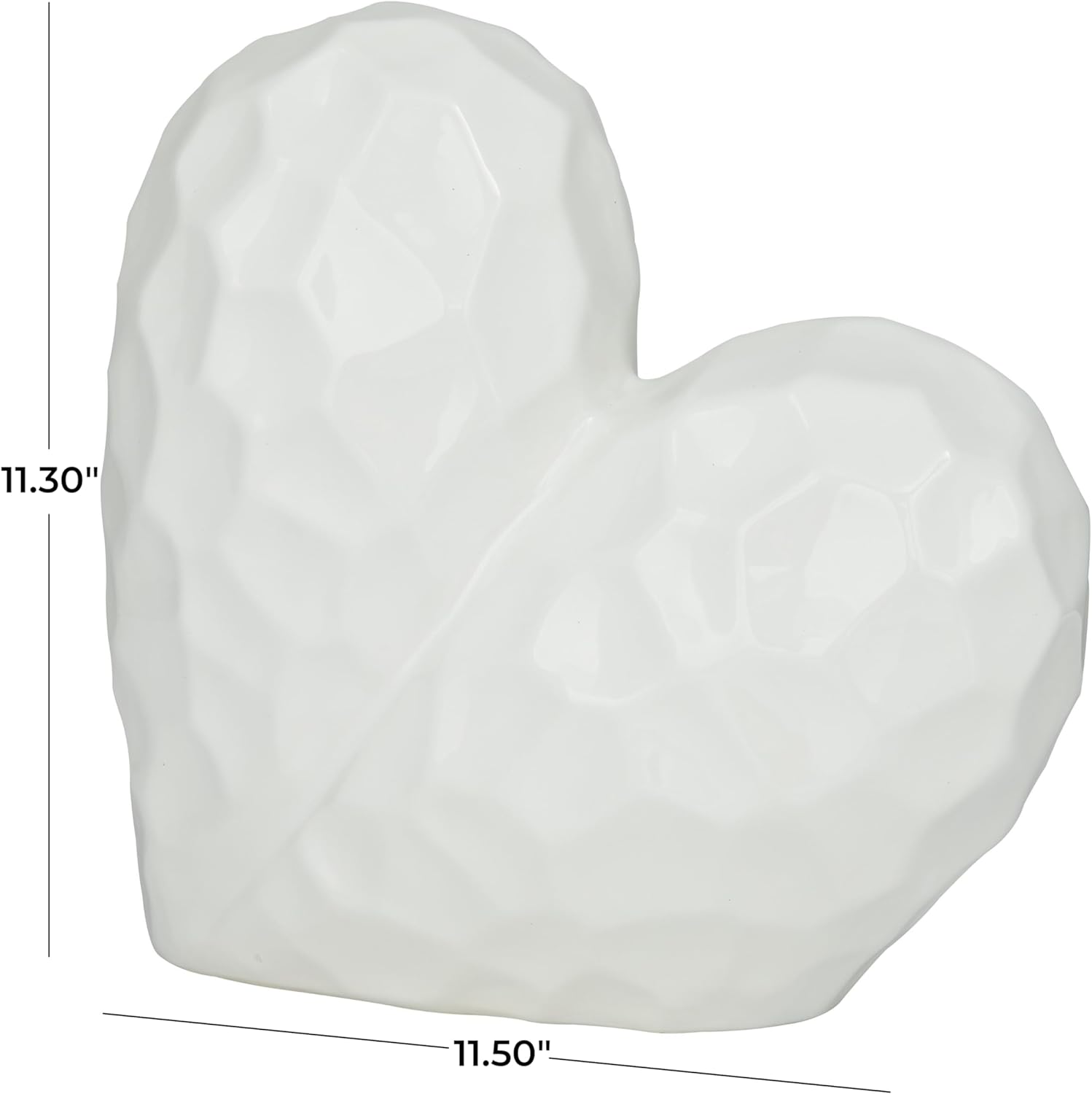 Deco 79 Porcelain Ceramic Heart Decorative Sculpture Dimensional Angled Origami Inspired Home Decor Statue, Accent Figurine 12" x 6" x 11", White