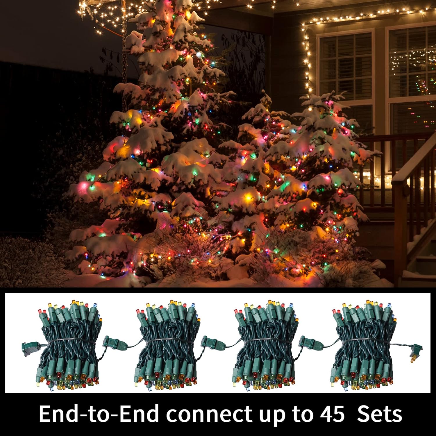 - Connect 45 Sets on One Plug: Safely connect up to 45 sets end-to-end on one plug, so if one string lights burns out, the others remain on. Also, each white Christmas lights has 2 extra fuses that can be replaced without fear of burnout or overload.