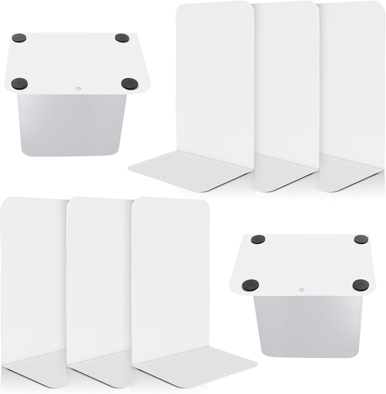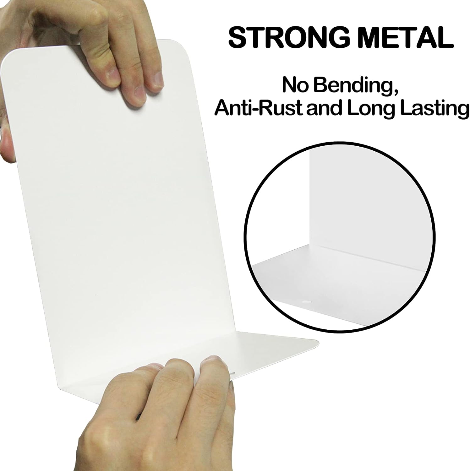 - Sturdy and Durable Bookends: Made from high-tech metal; features 4 padded rubbers on the bottom to prevent slipping; keeps books tidy and upright; indestructible; also prevents the desktop from being scratched