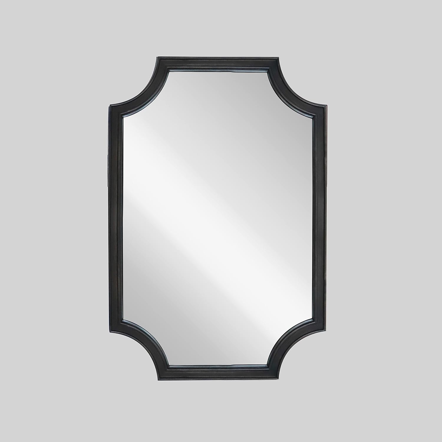 WallBeyond 20" x 30" Full Scalloped Corners Arch Rectangle Wall Mirror with Wood Frame for Entryway, Living Room or Bedroom Home Decor - Light Woodgrain [20" x 30" Black]