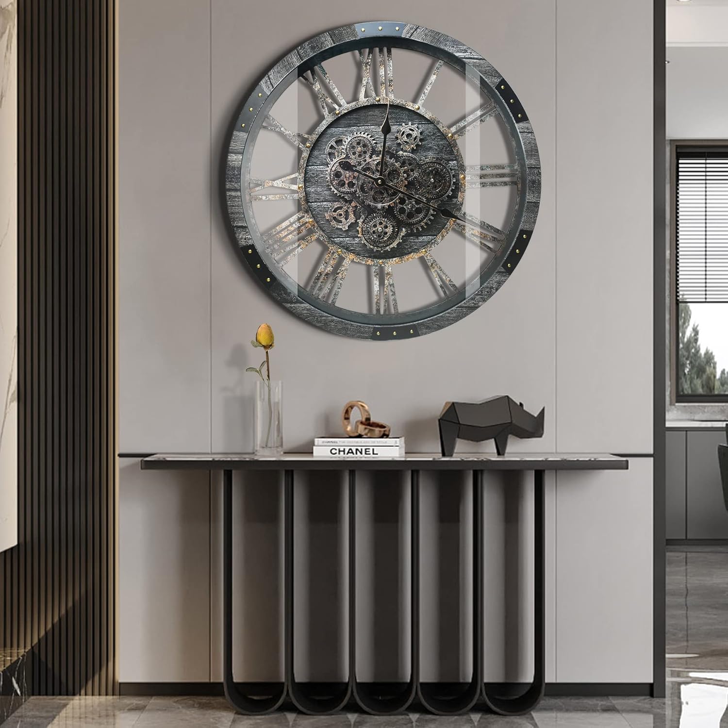 - Real Moving Gears Wall Clock: The big rustic wall clock is designed with multi-real moving gears, put battery in, various gears start working, makes a subtle relaxing sound and makes a living element in the environment in where it is placed, vintage and magical, catch all eyes of visitors