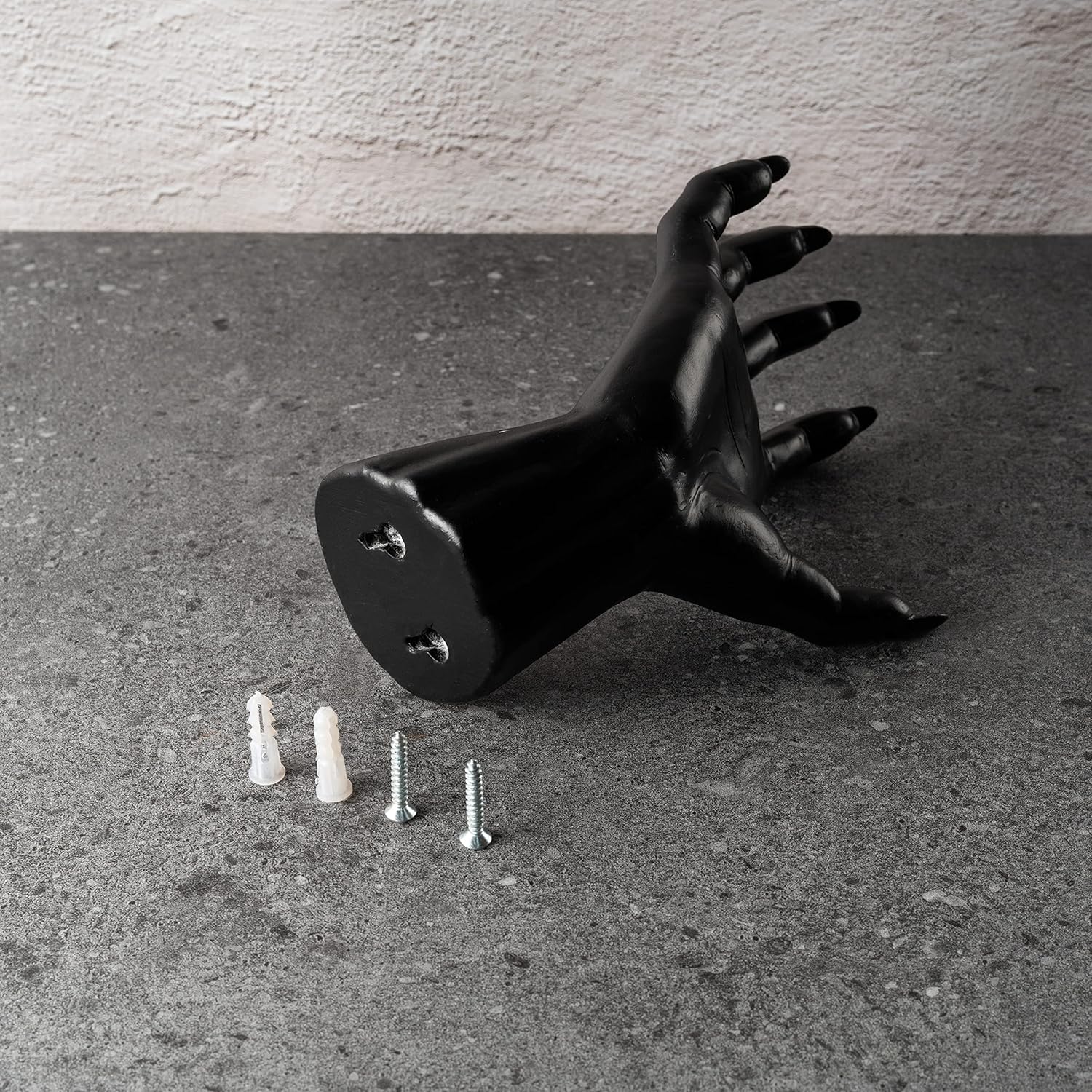 - This decorative monster hand by GUTE is made of high quality resin and is sure to add an artistic touch to your walls! The extended hand with fingers curled in is sure to spook those visiting your very own house, as they'll see it as a mysterious figure reaching out to grab them. Or, rotate it sideways and have a convenient wall mount for any handheld items!
