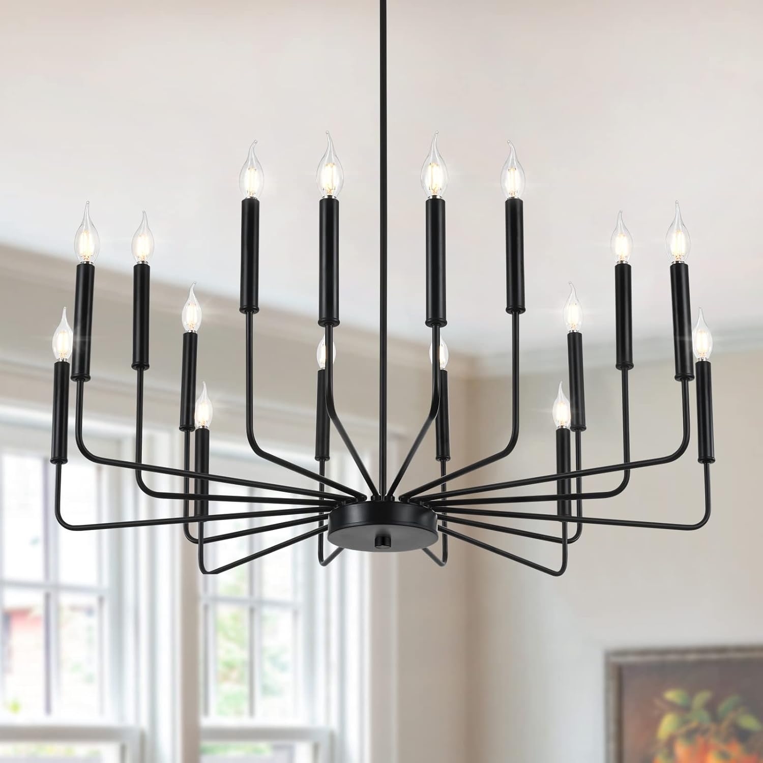 Modern Black Farmhouse Chandeliers, 16-Light Industrial Metal Chandelier Lighting, Classic Candle Hanging Pendant Light Fixtures for Kitchen Island, Living Room, Dining Room, Stair