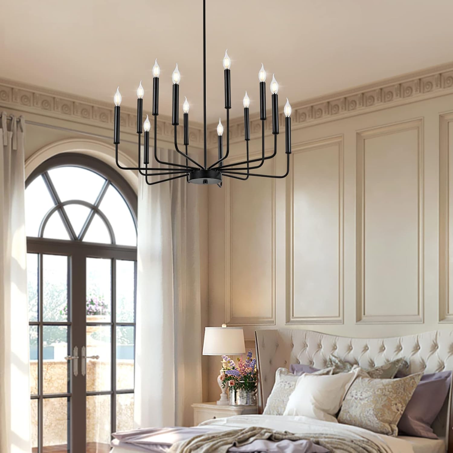 - Modern Fashion Design: A classy candelabra chandelier with different lengths of arms and black matte finish which allows you to clean easily. The appearance of 12 uneven arms look genuine and novel. The whole minimalist design is classic but not rigid. With this simple and retro look can upgrade your space that is elegant but generous