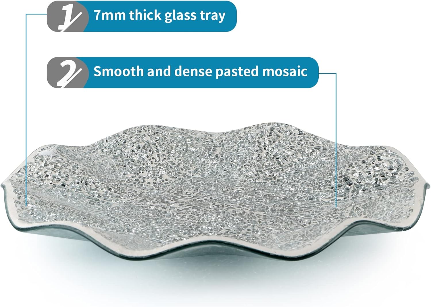 - MATERIAL: Made of 7mm thick glass, this mosaic tray is heavy as stable