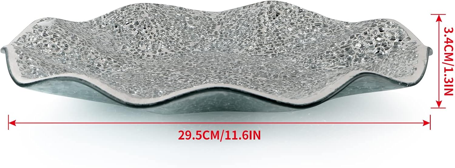 MDLUU Mosaic Centerpiece Tray, 11.6" Decorative Glass Plate, Home Decor Glass Bowl for Dining Room Table, Coffee Table, Gift (Silver)
