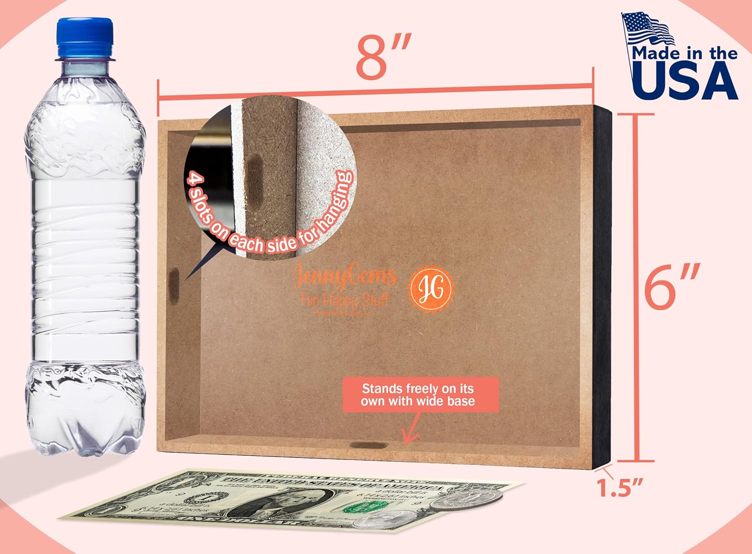 - Sturdy wood freestanding sign that also has a built-in hook on the back for wall hanging; Stands freely on a tabletop surface - shelf, desk, mantel or counter.