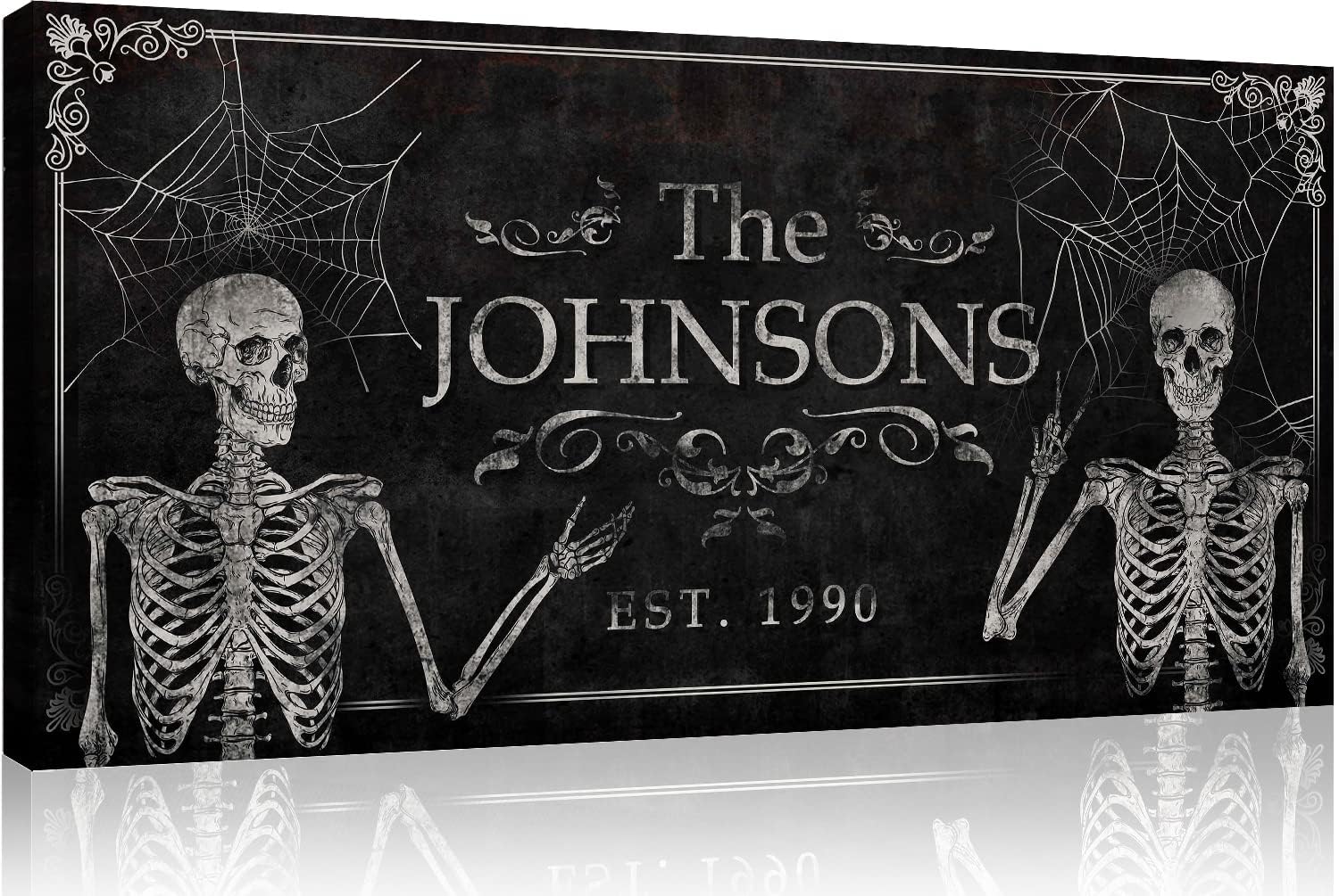 Tailored Canvases Gothic Family Wall Decor - Personalized Grunge Vintage Skeleton Room Decor for Home, Halloween Lovers, Men & Women for Bedroom, Living Room - Custom Couple Name, White Print, 20"x10"