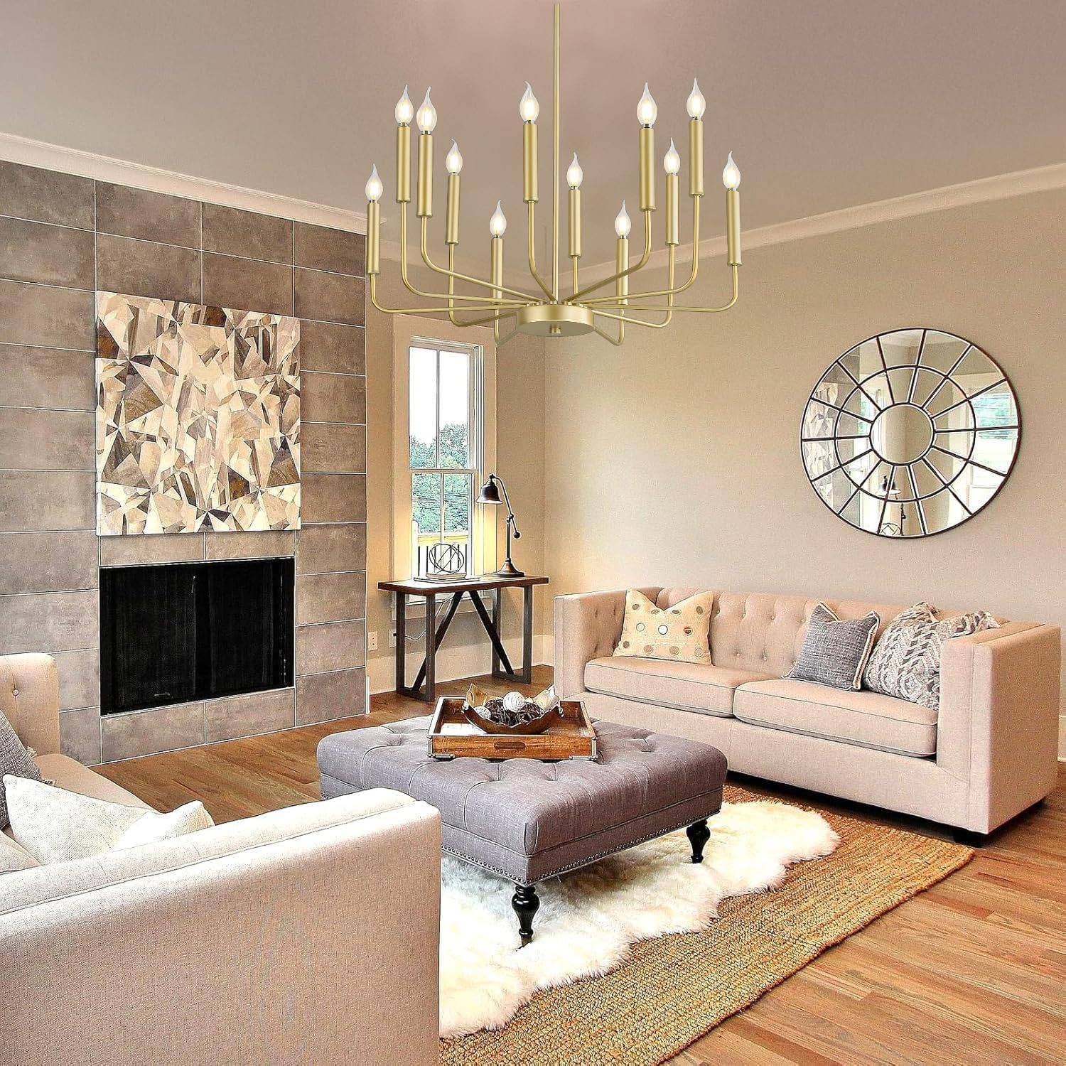 Modern Gold Farmhouse Chandeliers, 12-Light Industrial Metal Chandelier Lighting, Classic Candle Hanging Pendant Light Fixtures for Kitchen, Dining Room, Living Room, Entryway
