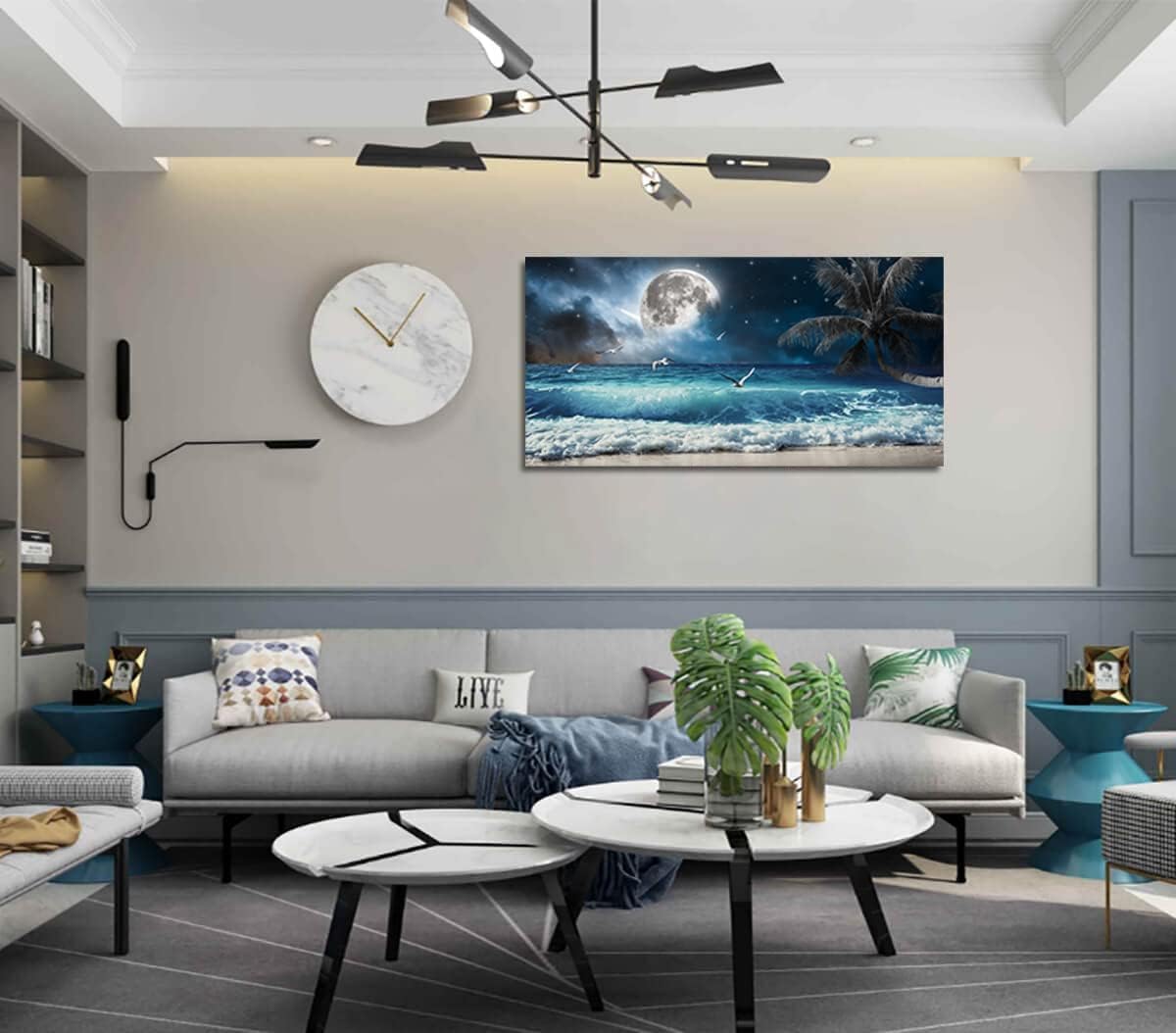 Yxbhhym Moon Ocean Decor Beach Wall Art Seascape Painting Sea Canvas Poster Prints Landscape Plam Pictures Artwork for Living Room Decor Wall Decorations large Framed Wall Art -20x40inches