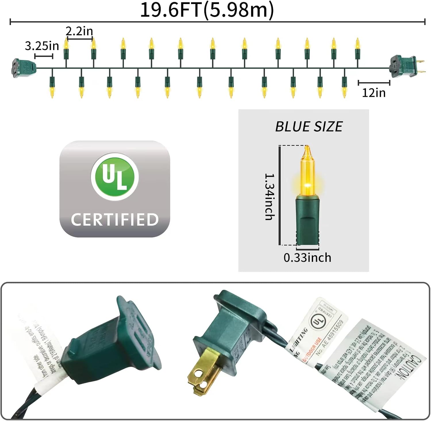 - 🎅Built-in fuses are UL listed for safe use. Complimentary 3 spare bulbs and 2 fuses.