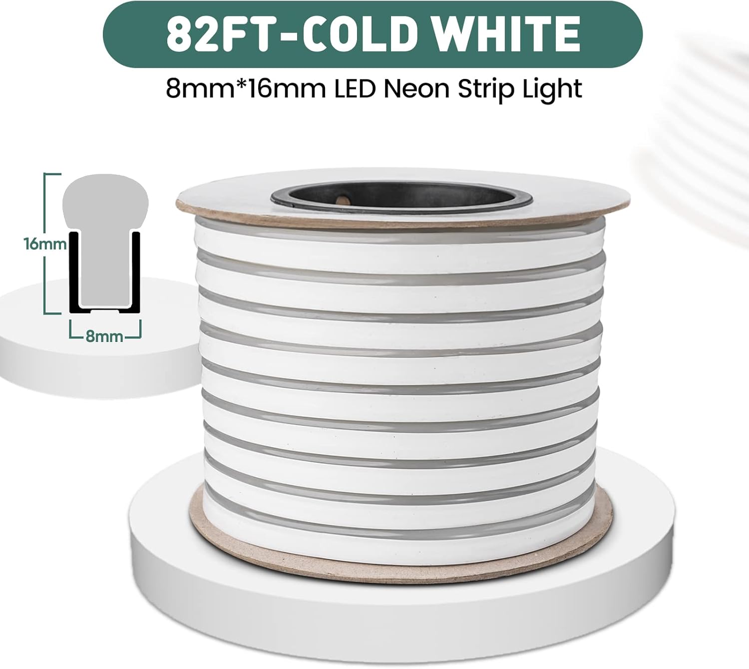 GZBtech Flexible LED Neon Rope Lights 82FT,AC 110-120V Waterproof Strip Light, 120 LEDs/M Cuttable Connectable Neon Lighting for Indoor Outdoor Home Decor/Commercial Building Use-Cold White 25M