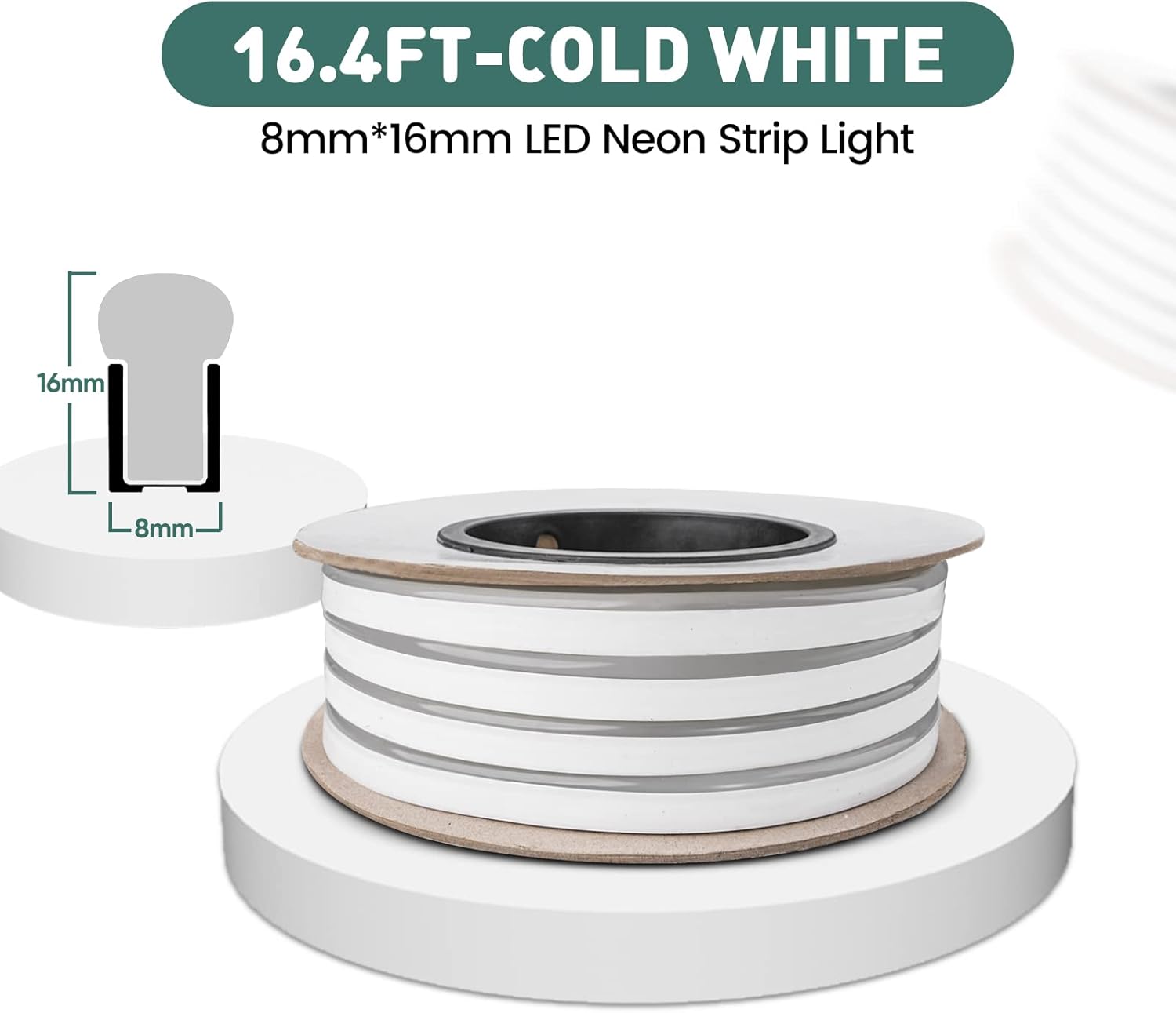 GZBtech Flexible LED Neon Rope Lights 16.4FT,AC 110-120V Waterproof Strip Light, 120 LEDs/M Cuttable Connectable Neon Lighting for Indoor Outdoor Home Decor/Commercial Building Use-Cold White 5M